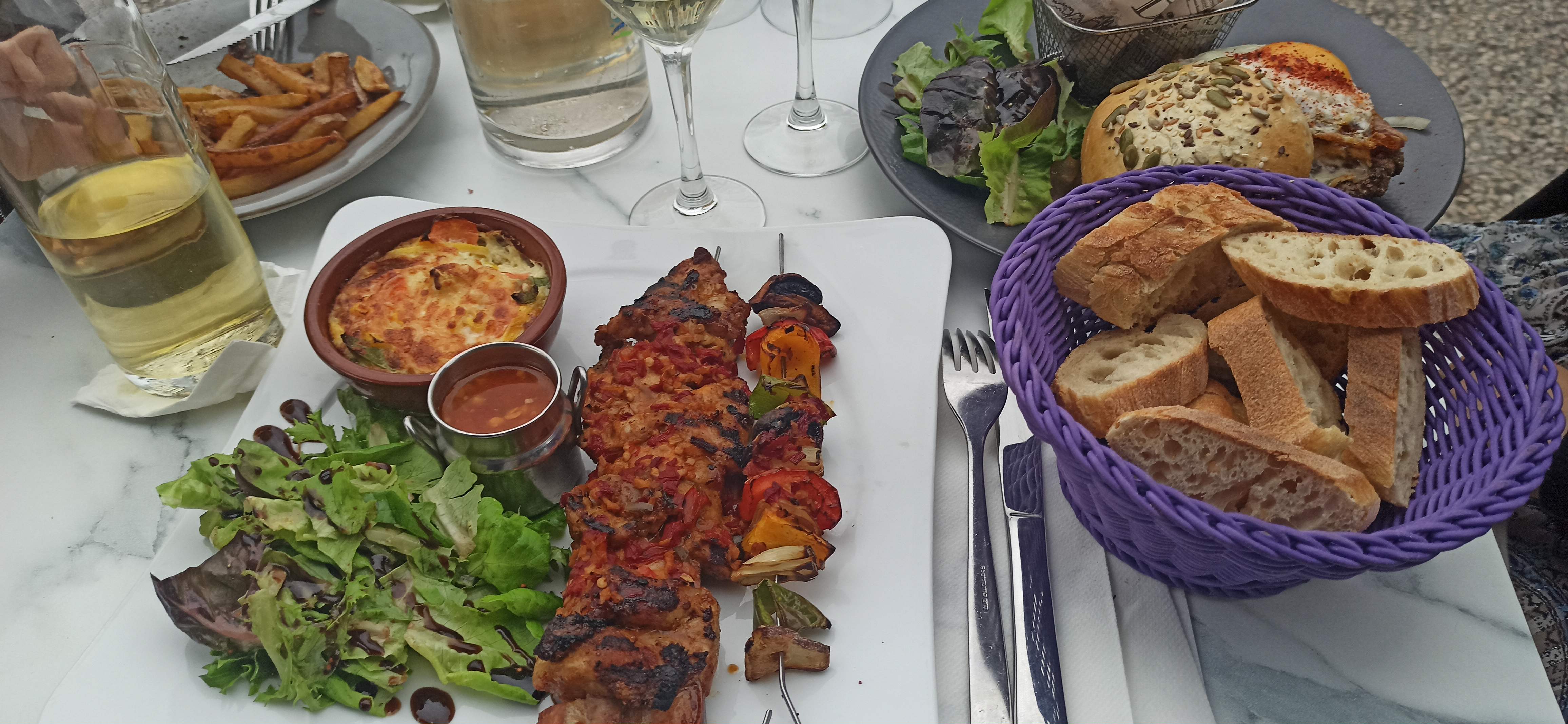 Personnel plutôt sympathique mais décevant par rapport à ma précédente visite... Viande trop cuite (malgré avoir bien demandé saignant) et bun (du burger) très sec. Pas mauvais mais pas super non plus malgré un excellent choix de vins. Autre souci, une désinvolture totale vis à vis de l'hygiène et des gestes sanitaires, dans le contexte actuel c'est assez étrange (et ça ne donne pas confiance en ce que l'on mange)