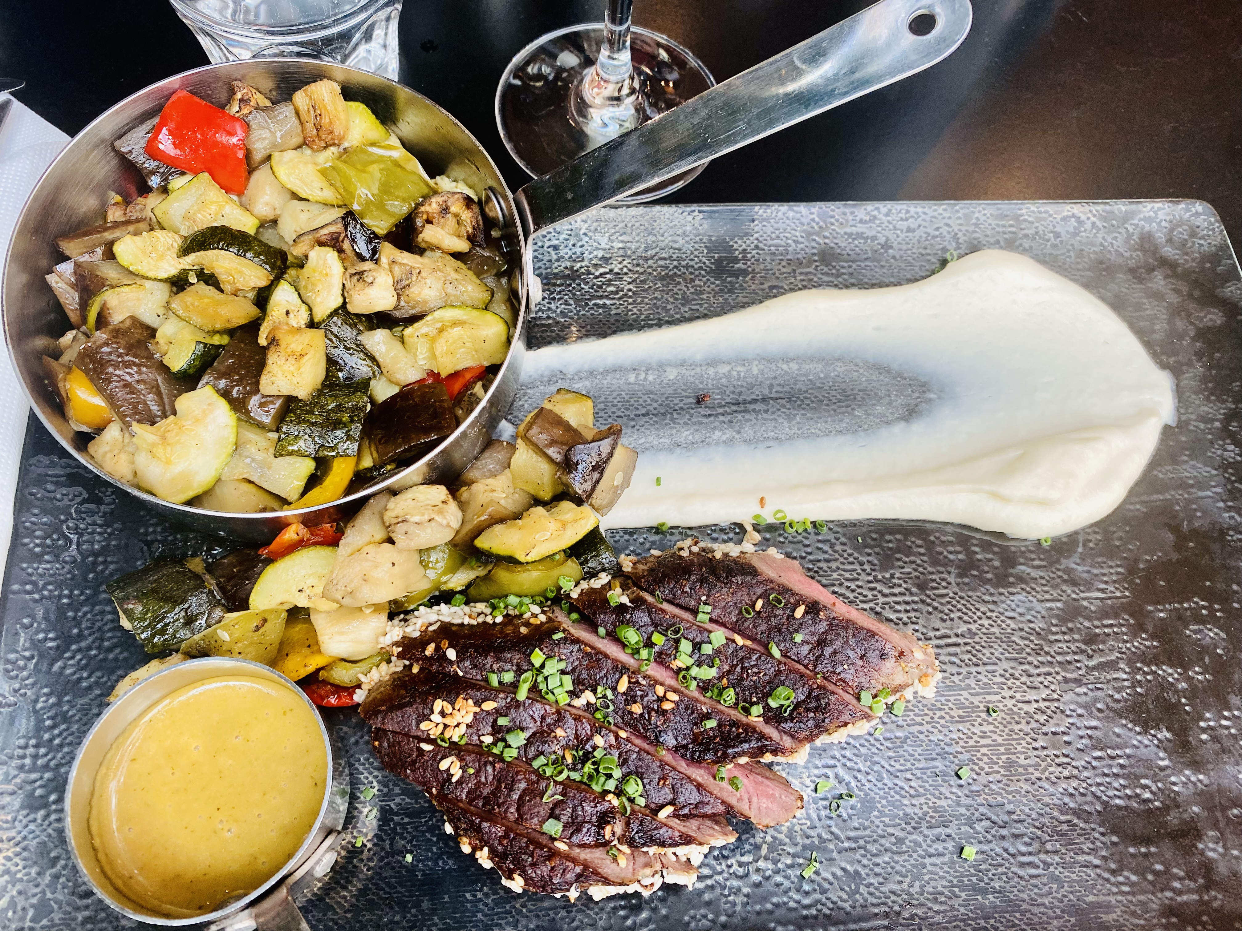 Rare mes 5 étoiles sauf que j'ai commandé un steak tartare avec des légumes sautés et le gagnant fut les légumes! C'était frais, croquants, assaisonnés avec des vraies herbes! Mon compagnon a pris un thon mi-cuit c'était divin avec une petite sauce soya du chef! Nous reviendrons!
