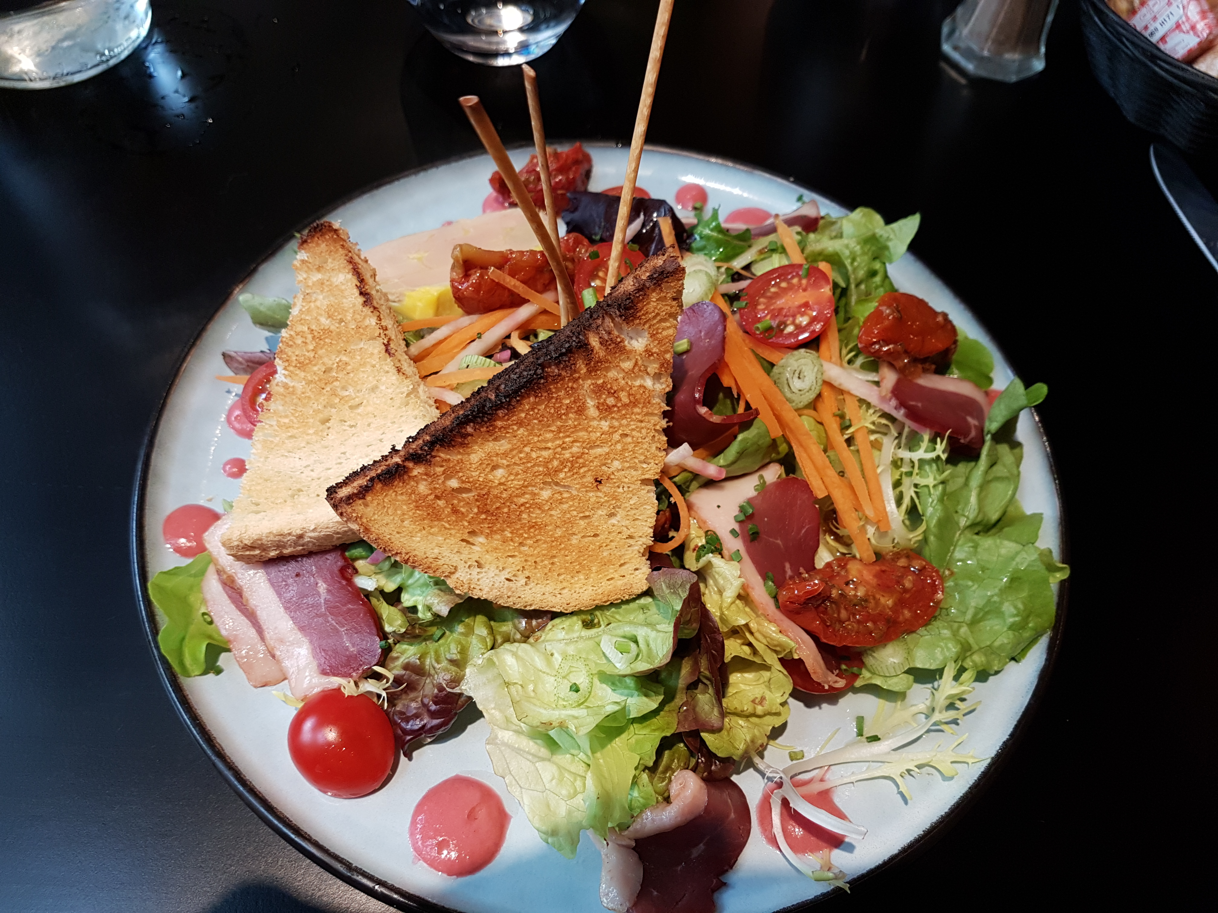 Excellente salade fraîcheur : la base de salade verte craquante et bien assaisonnée, les poissons à point. Service rapide et souriant. Un point noir : le bruit ! Quand au brouhaha des clients sous la verrière s’ajoutent les boum boums d’une pseudo musique, difficile de savourer ! Dommage sinon c’était un 5 étoiles !!!