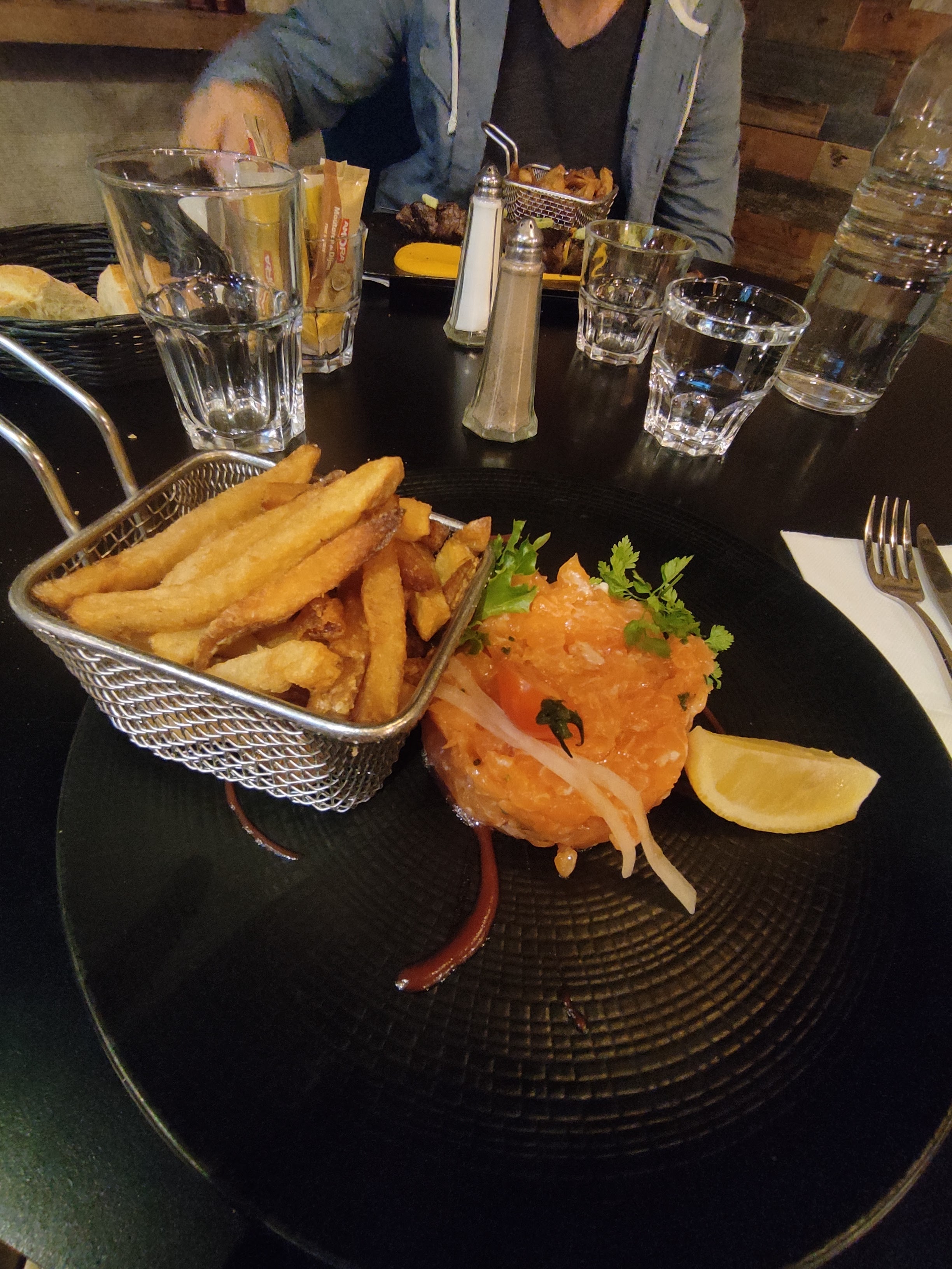 Je pense avoir fait un choix risqué en prenant l'assortiment de tartares. A mon avis le chef est bon car la préparation et présentation étaient tres bien, mais les produits n'étaient pas de bonne qualité. Les tartares : le canard était extremement salé, le thon trop gras, le boeuf filamenteux et le saumon était tres bon par contre. Les frites maison sont excellentes. Je reviendrai pour tester autre chose avant de me faire un avis définitif sur ce restaurant en esperant que la qualité soit au rendez-vous cette fois.