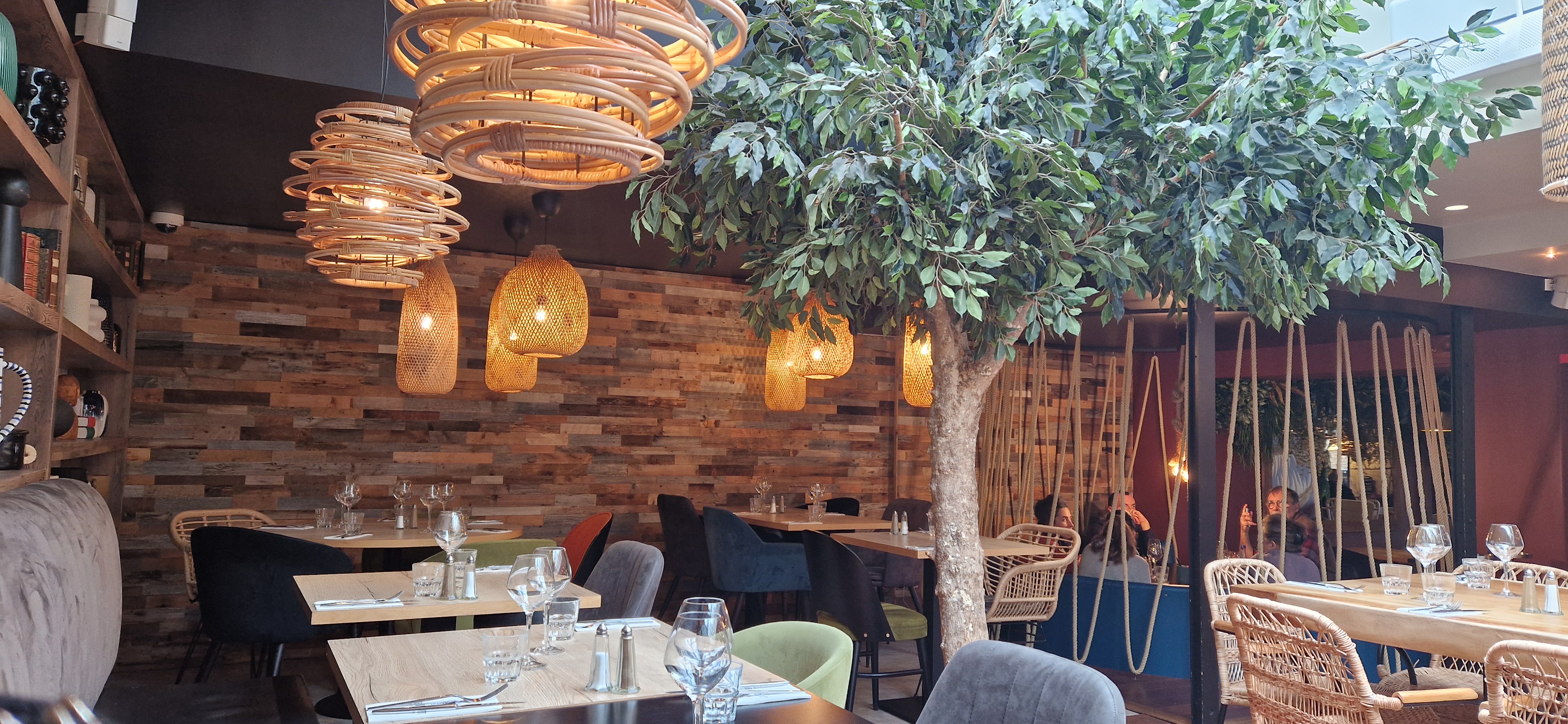 Quelle belle décoration et quel bel agencement fait avec beaucoup de goût. Des espaces bien différents et des séparations originales entre les tables. Une cuisine faite avec de produits frais et du fait maison. Un accueil sympathique. Bon restaurant pour un prix raisonnable.