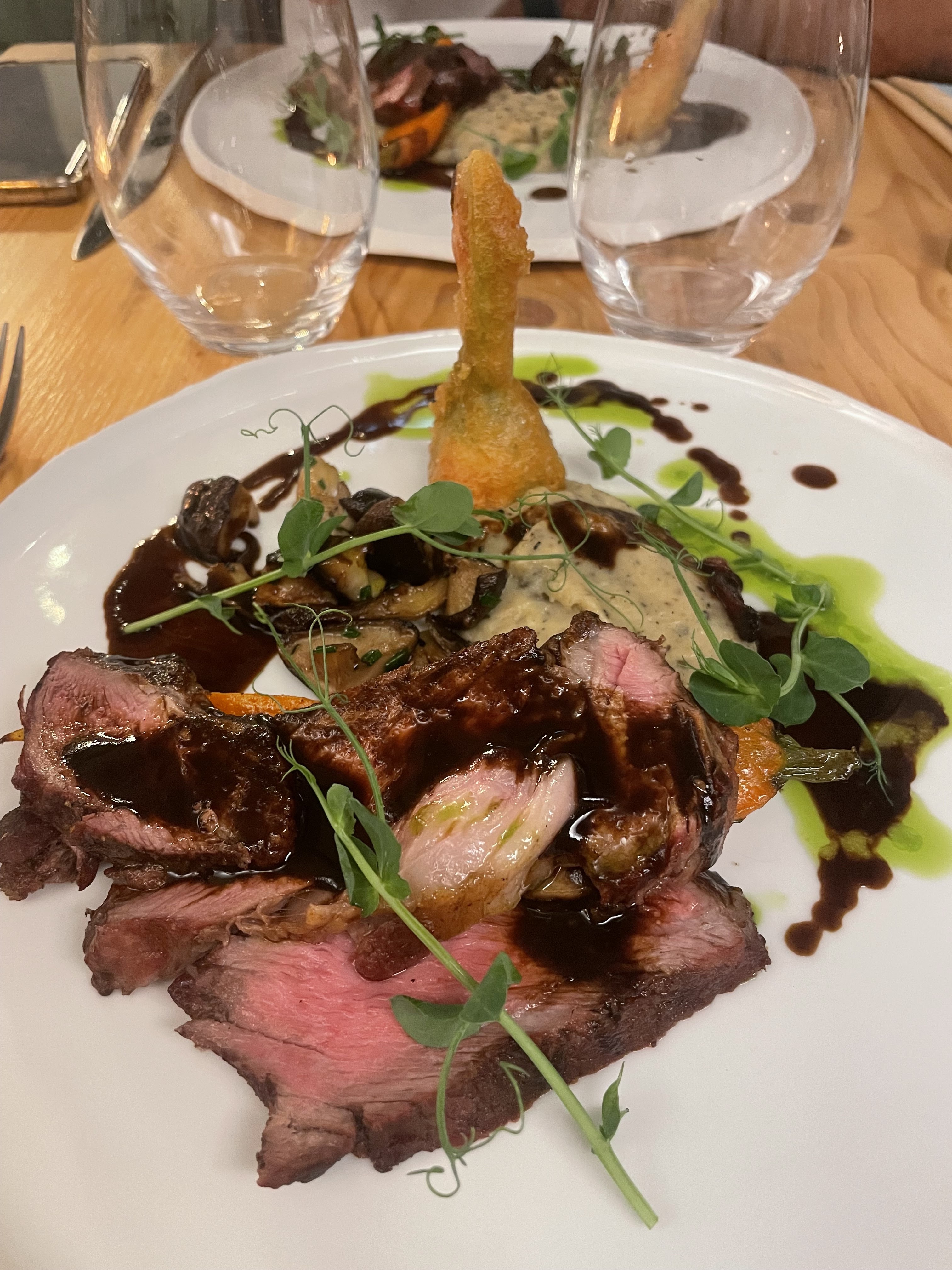 Restaurant très bien décoré mais mon assiette de lapin était fade sans goût et la viande très grasse. Idem pour les pennes. Personnellement je trouve les prix avec peu de choses dans l'assiette mais il en faut pour tous le monde. Perso je n'y retournerai pas.