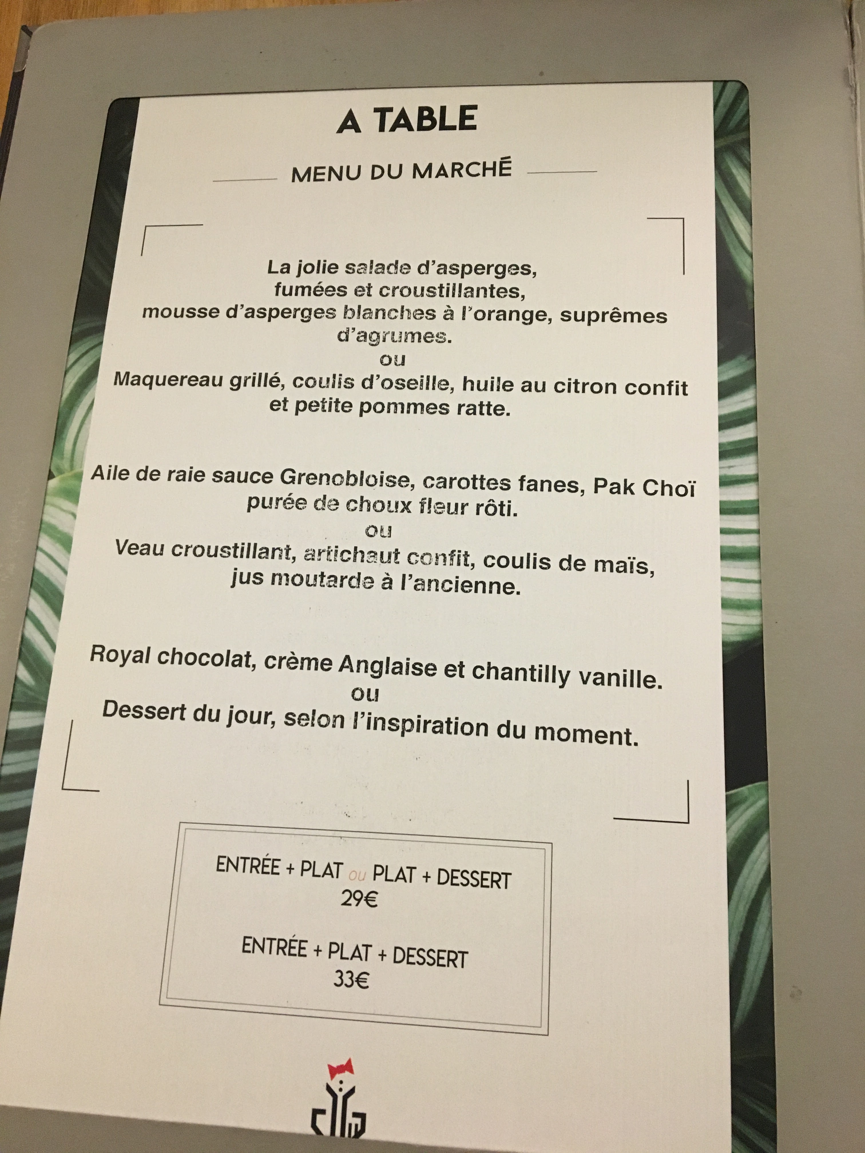 Tout près des Carmes, dans une petite rue, ce restaurant possède une décoration à la fois moderne et chaleureuse. La salle principale est sous une verrière, d'oú le nom du restaurant. À midi menu à 27 €, entrée, plat dessert. C'est bon et assez copieux. Jeune serveuse sympa et efficace. Une bonne adresse dans ce quartier