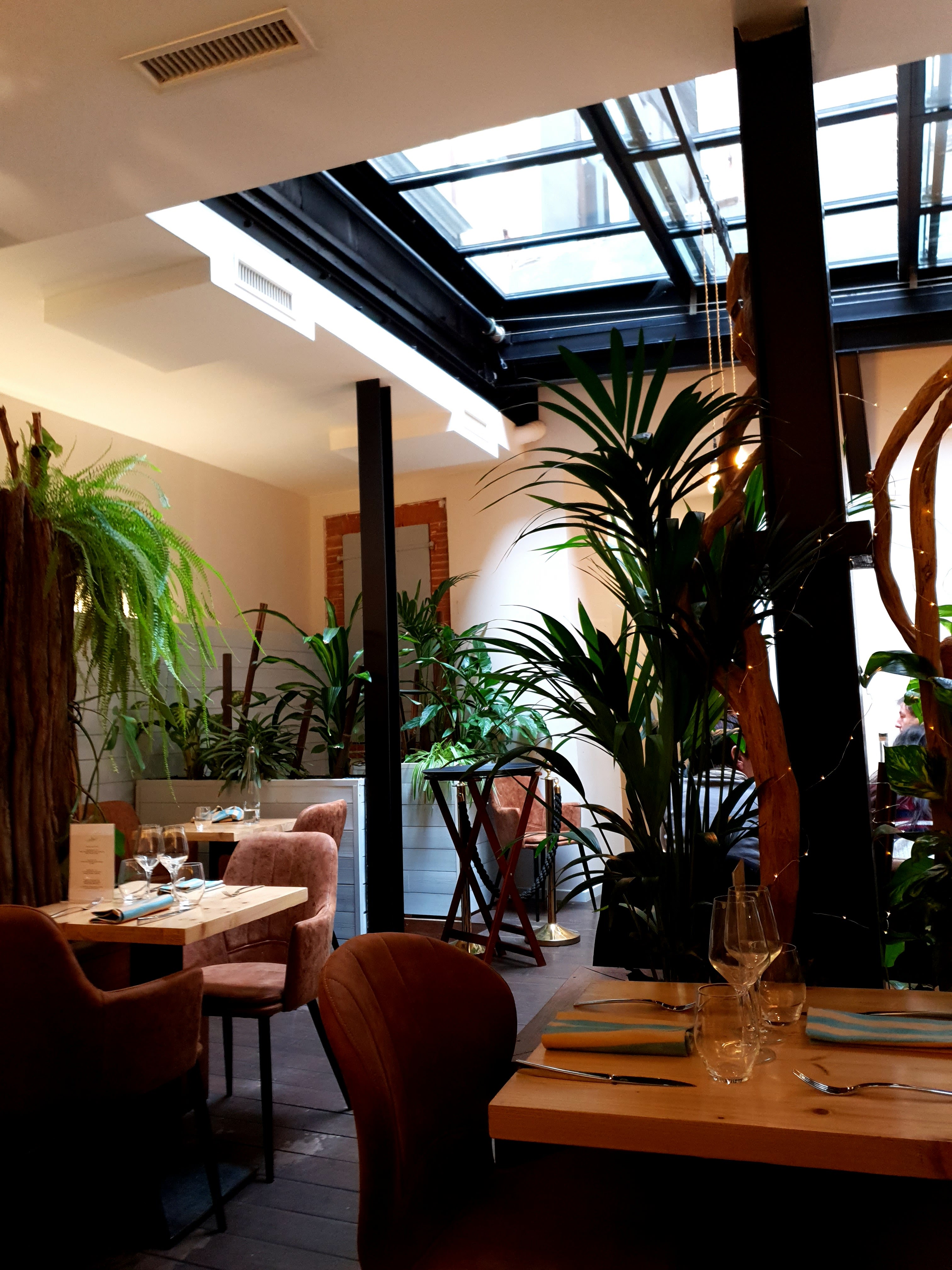 Un espace de taille étonnante derrière une façade réduite dans une petite rue typique des Carmes. On entre dans un ancien patio entre les immeubles traditionnels, récemment recouvert d'une verrière. Le décor est moderne et chaleureux, le service très agréable présente chaque plat comme tout bon restaurant gastronomique, les assiettes mélangent des saveurs de façon riche et originale avec une présentation soignée et une vaisselle variée. Une table gastronomique avec un prix au niveau de la qualité visée : 46€ le menu 4 plats (42€ végétarien), le plus 'petit' menu le soir.