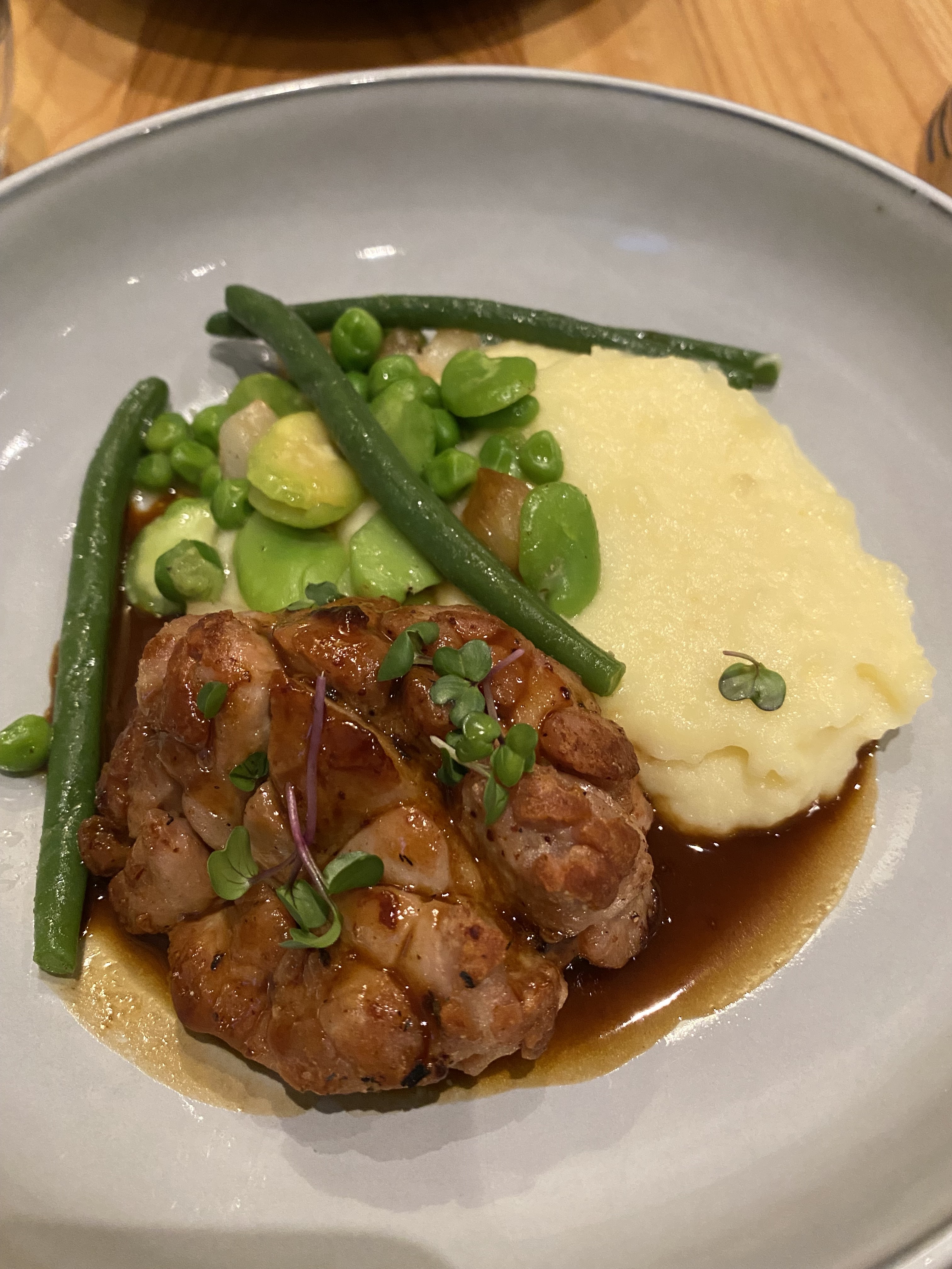 Délicieux et bel endroit ♥️. Très bonne qualité de l’assiette , de bons produits bien préparés, bien présentés. Le personnel est adorable, disponible et souriant. Dîner avec un ami, et même si le restaurant était complet (y compris des groupes) , nous avons pu mener des conversations sans aucune gêne sonore. Belle carte des vins.