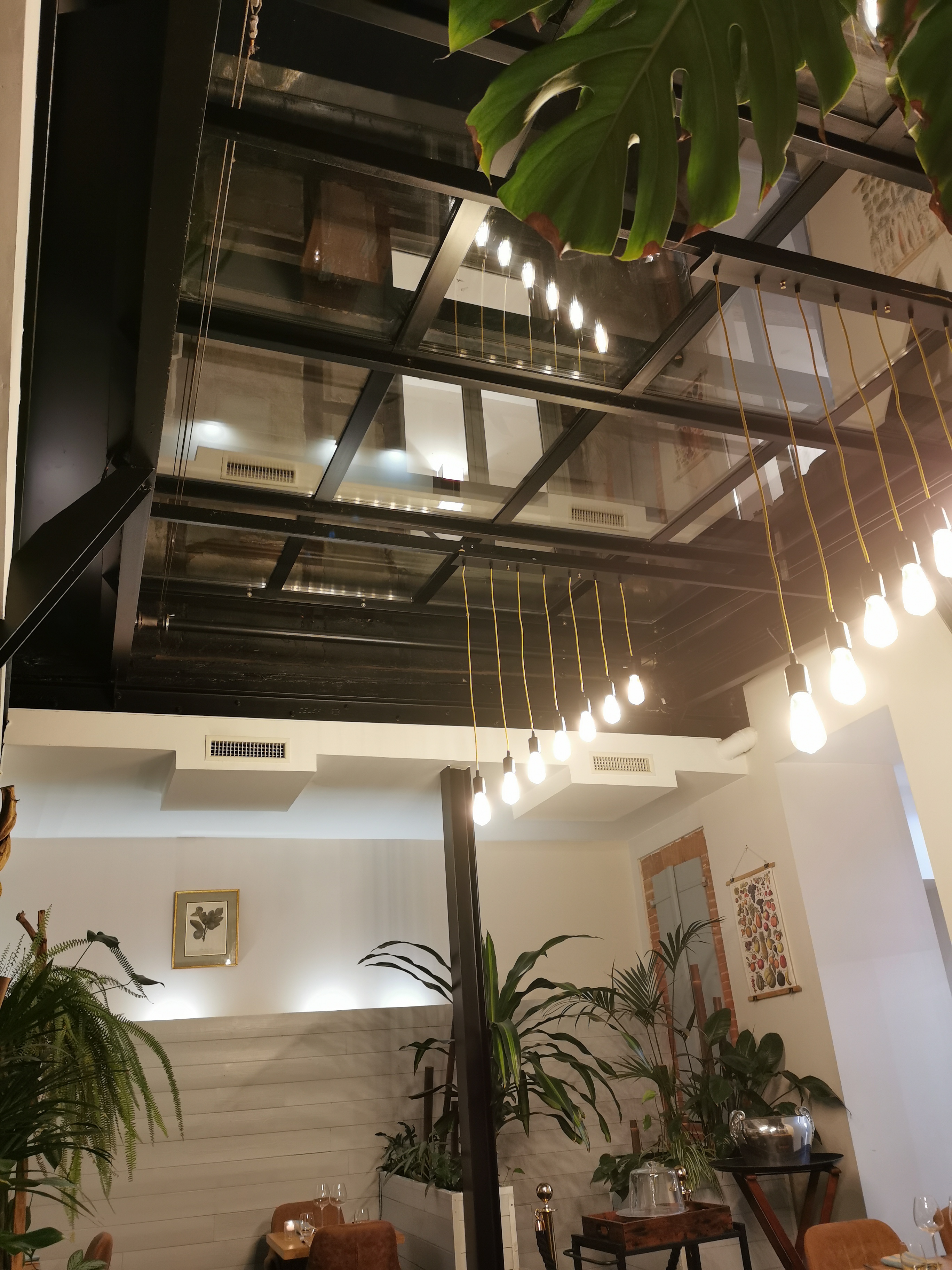 Superbe endroit, design cosi avec cette verriere atypique. La cuisine ( menu du midi) est de grande qualité, originale, avec beaucoup de saveurs. Très agréable surprise, je conseille vivement