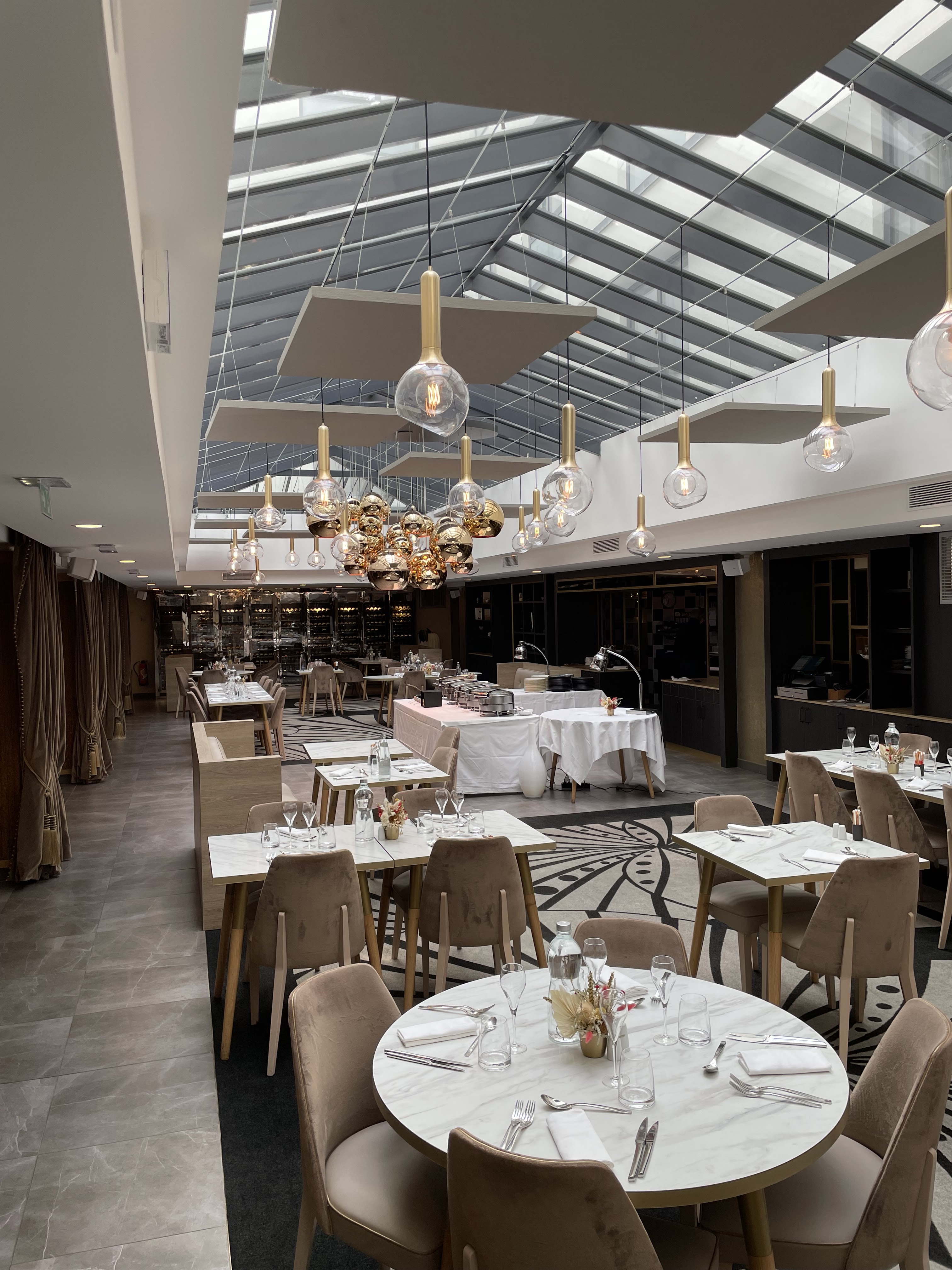 Superbe découverte et très bon restaurant, le cadre et très sympas, la verrière est vraiment exceptionnel,propre et bien décoré. Les plats étaient bons, bien élaboré et pensée. Un service digne d’un Hilton voir les cuisines et les préparations devant nous c’était génial. Nous reviendrons lors de nos prochains déjeuné pro
