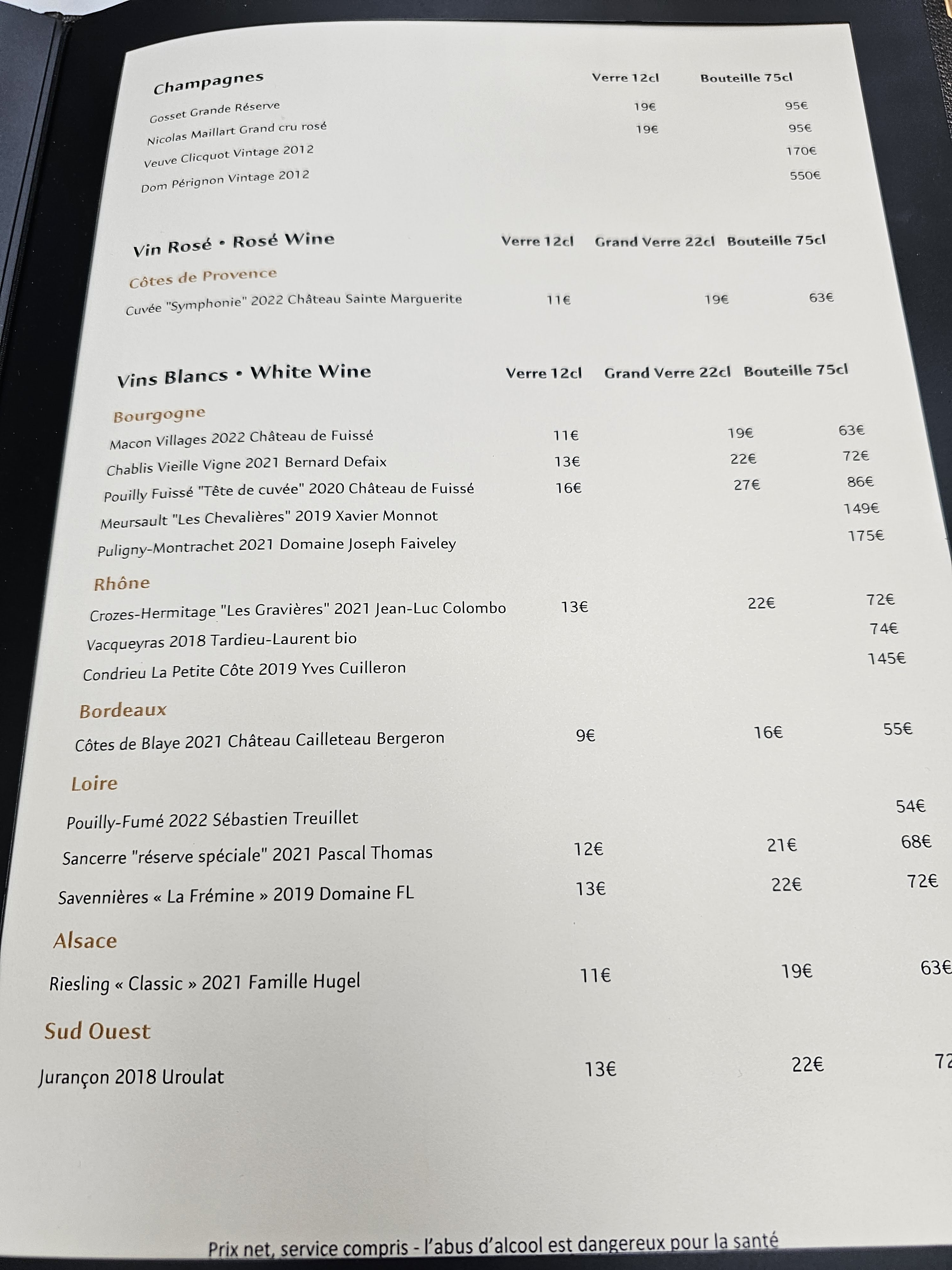 Bonne cuisine , cadre sympathique, dommage que les doses de vin soient homéopathiques ( il est indiqué 12 cl mais je pense qu il y avait plutôt 8 pour les 2 verres de mercurey a 12€)