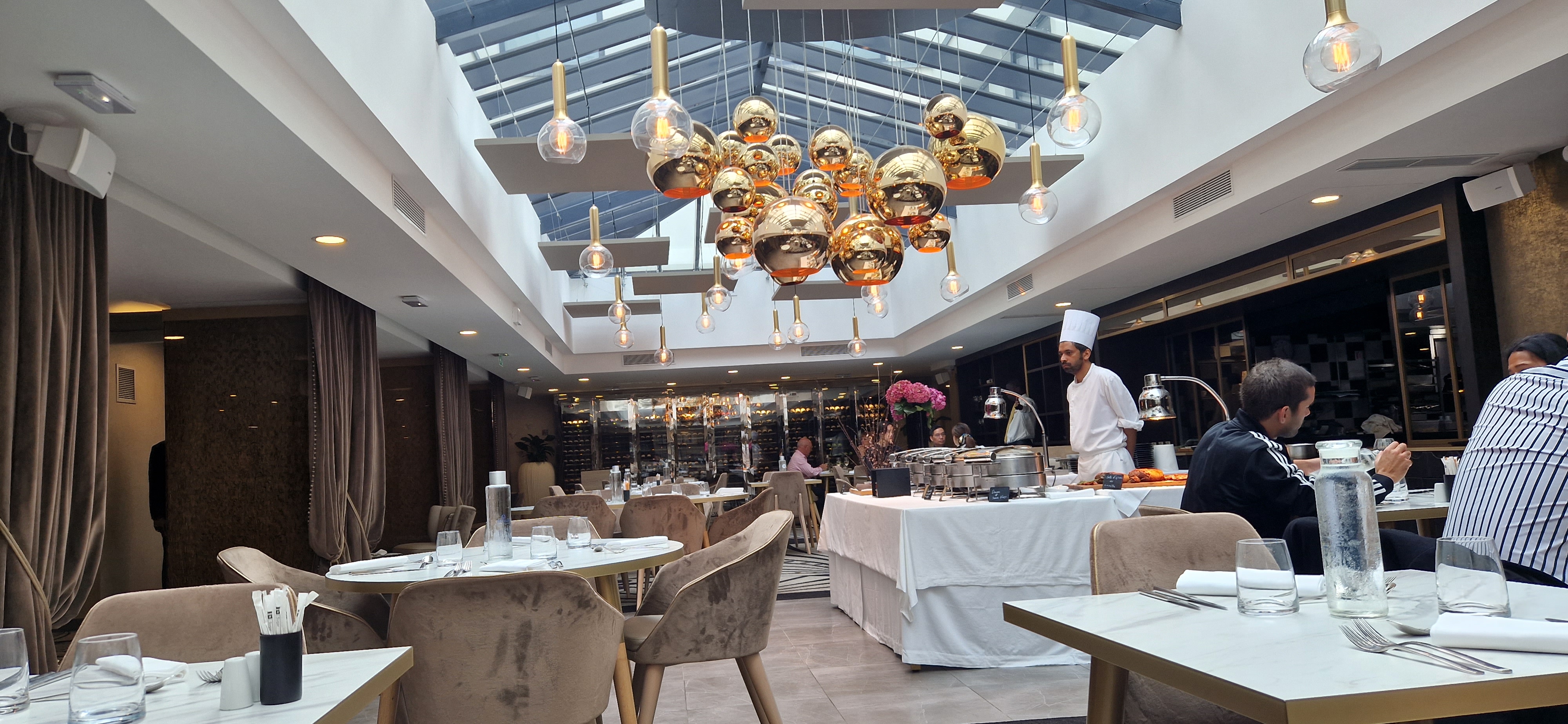 Première expérience au brunch du dimanche. Bon accueil et buffet varié avec un large choix de plats froids et chauds. Toute l’équipe est aux petits soins. L’ambiance est agréable avec cette verrière bien mise en valeur. Aujourd’hui nous avons apprécié le faux filet et le magret de canard, ainsi que le risotto aux champignons. Une bonne adresse que nous recommandons sans hésitation !