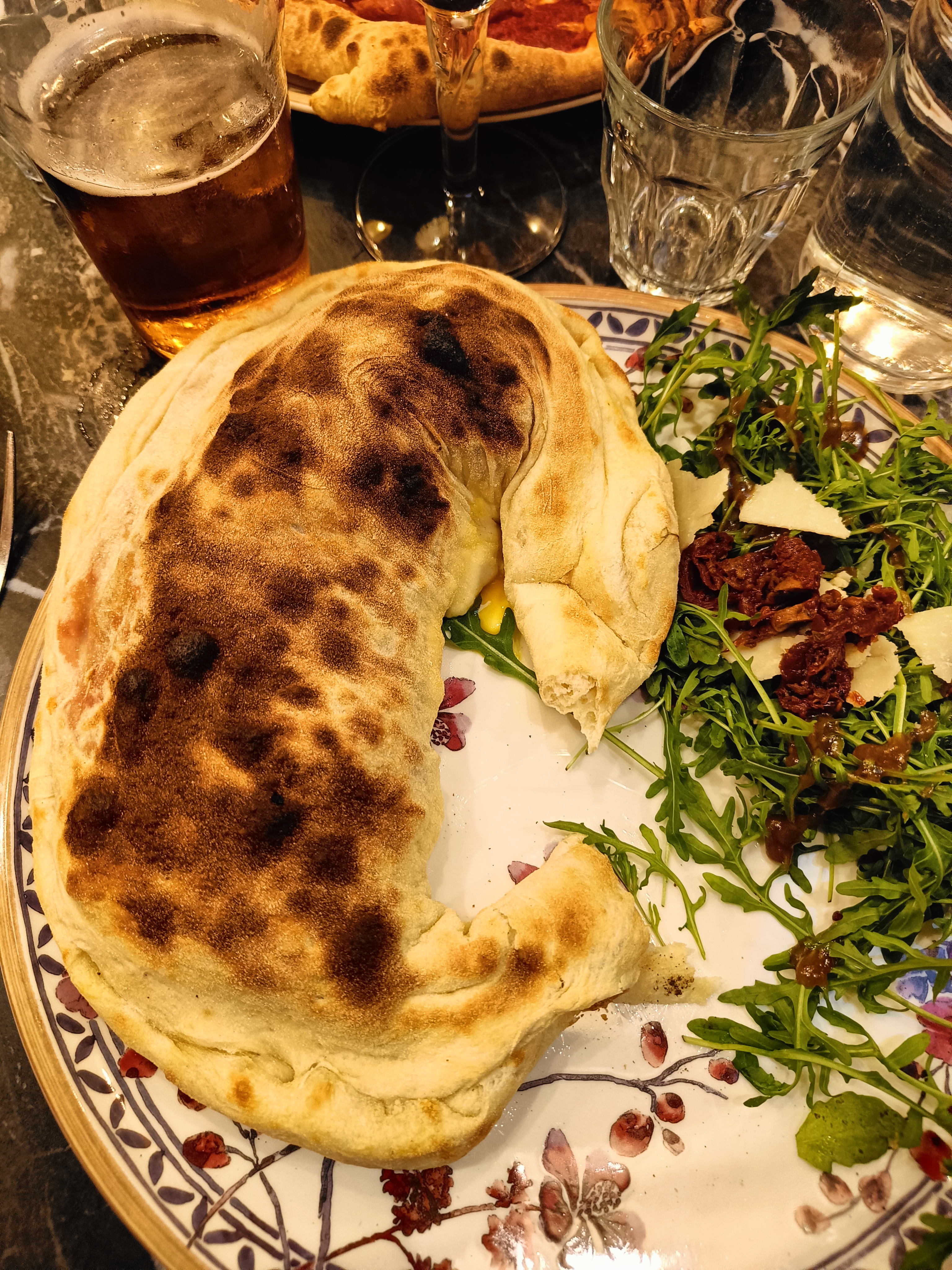 Nous avons pris 2 calzones et vraiment pas déçus !!! Pâte hyper bonne, la garniture copieuse et la forme sympa. Le personnel est vraiment souriant et sympathique. La salle est joliment décorée et le mobilier est confortable. Seul petit bémol, les écrans de télé avec le match de foot du FC Nantes... Bof pour ceux qui n'aiment pas.