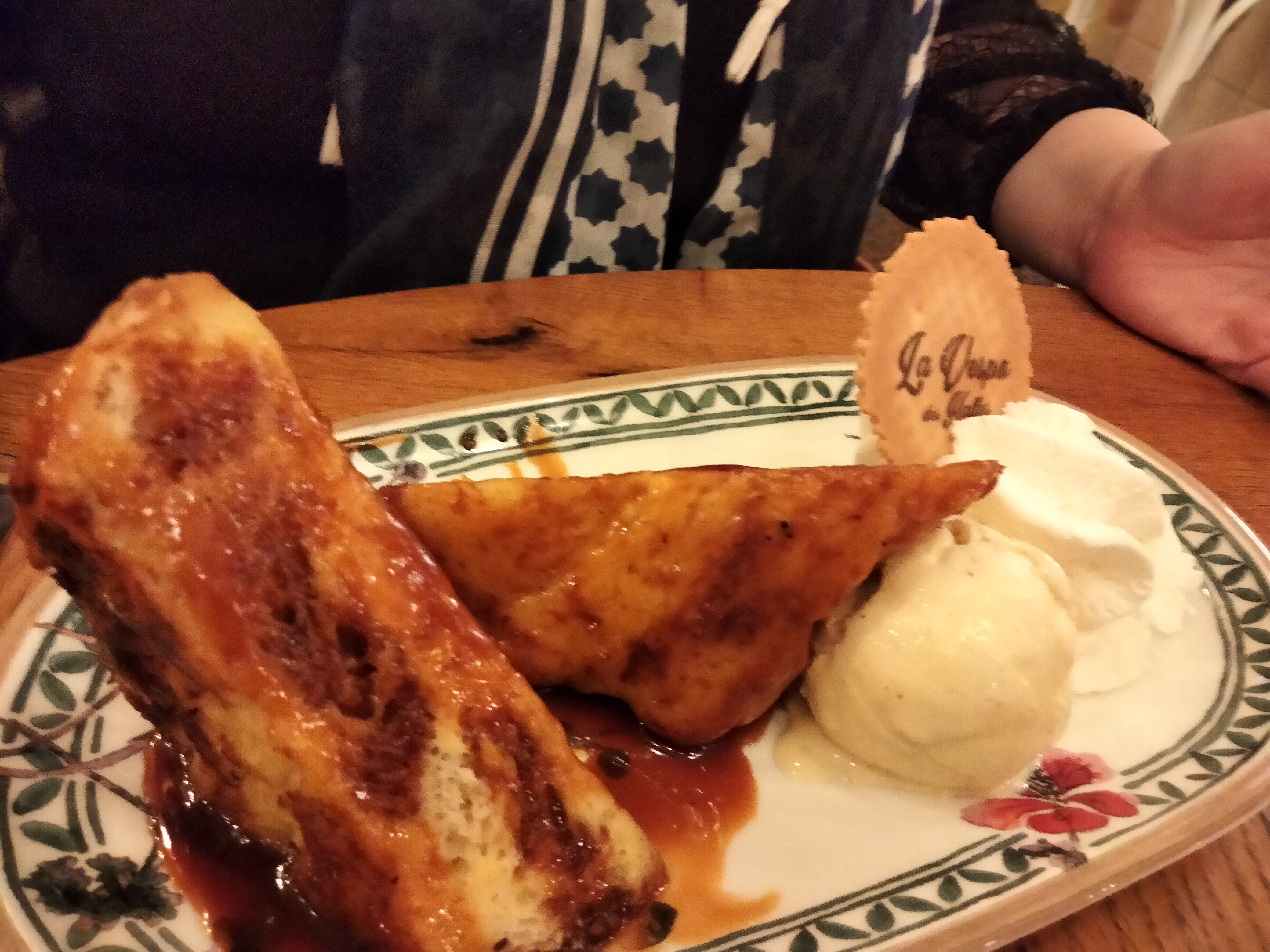 Le risotto gorgonzola et poulet croustillant, un délice. Et en dessert la brioche perdue une tuerie.