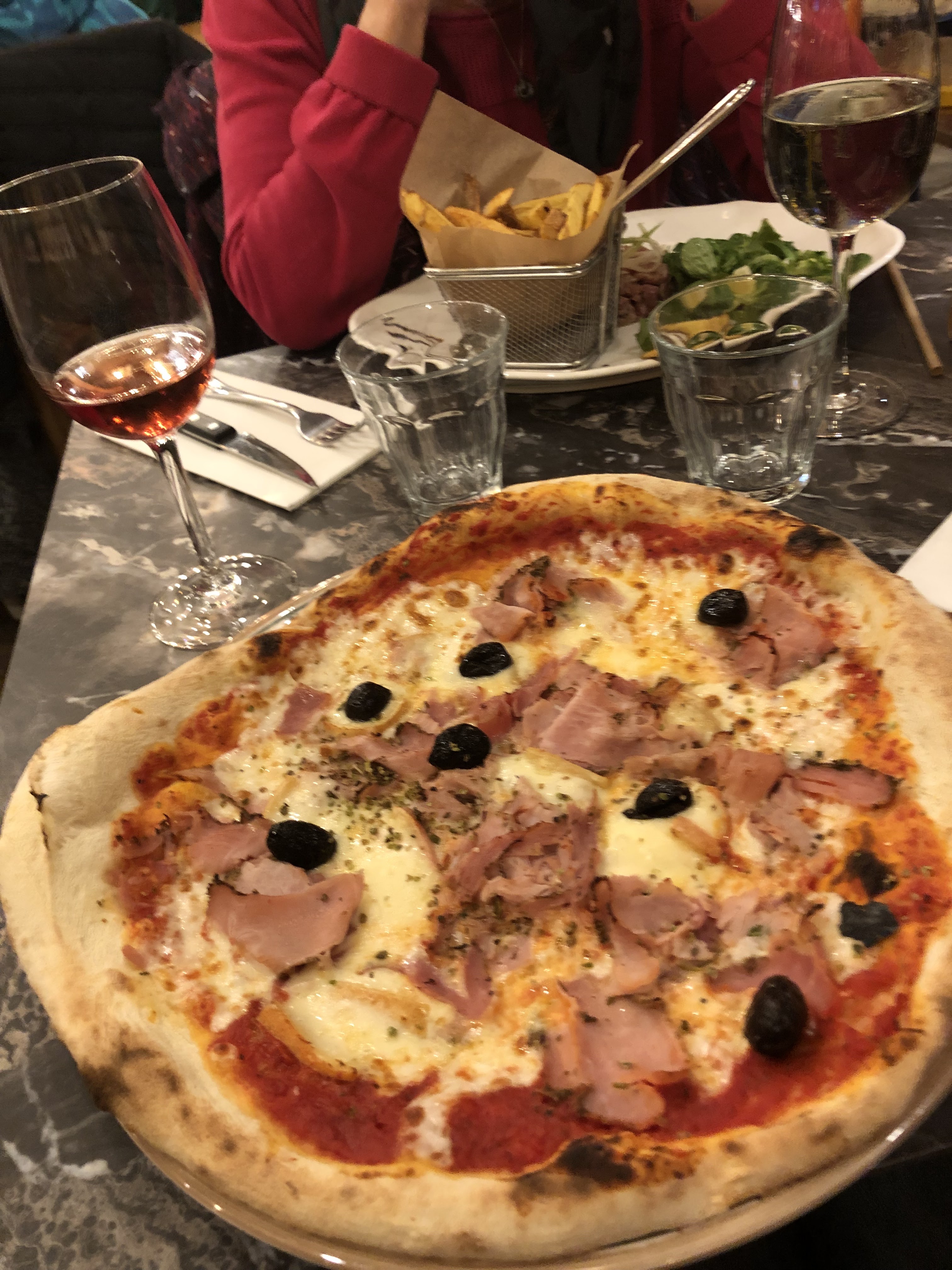 Le cadre est très sympa et chaleureux. Les pizzas sont très bonnes et garnies comme il faut. Les Spritz sont très bons également. J'avais demandé une petite attention en fin de repas pour la promotion de mon conjoint au moment de la réservation et ils ne l'ont pas fais qu'à moitié, malgré le fait que nous n'ayons pas pris de dessert. Ça a fait son petit effet, merci beaucoup :)
