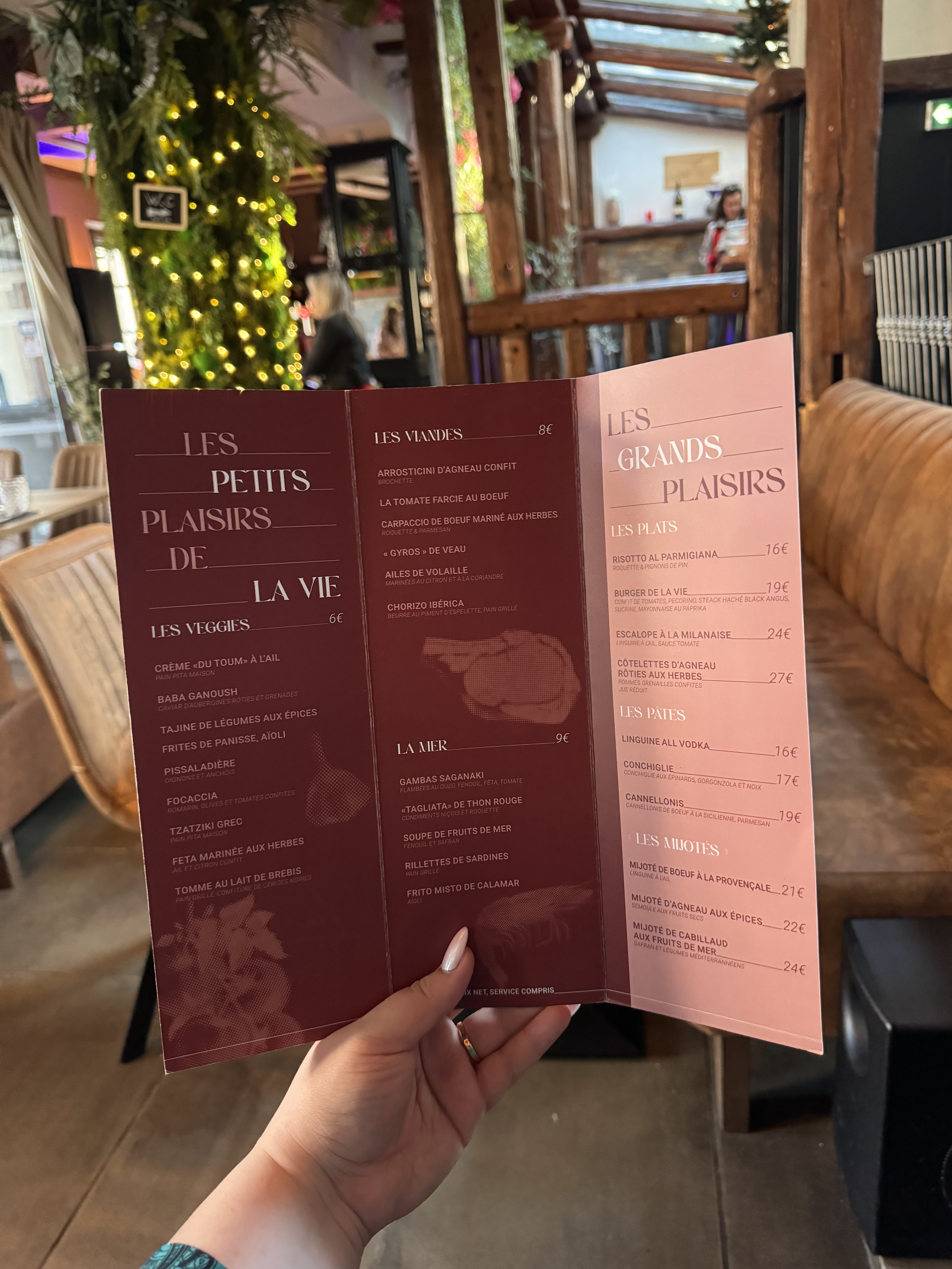 Super service , cadre très jolie et cosy mais le rapport qualité/prix n’est pas atteint, plats très chers par rapport à leur présentation, goût, quantité ect. Mais pas mauvais juste qui ne valent pas du tout le prix sur la carte.