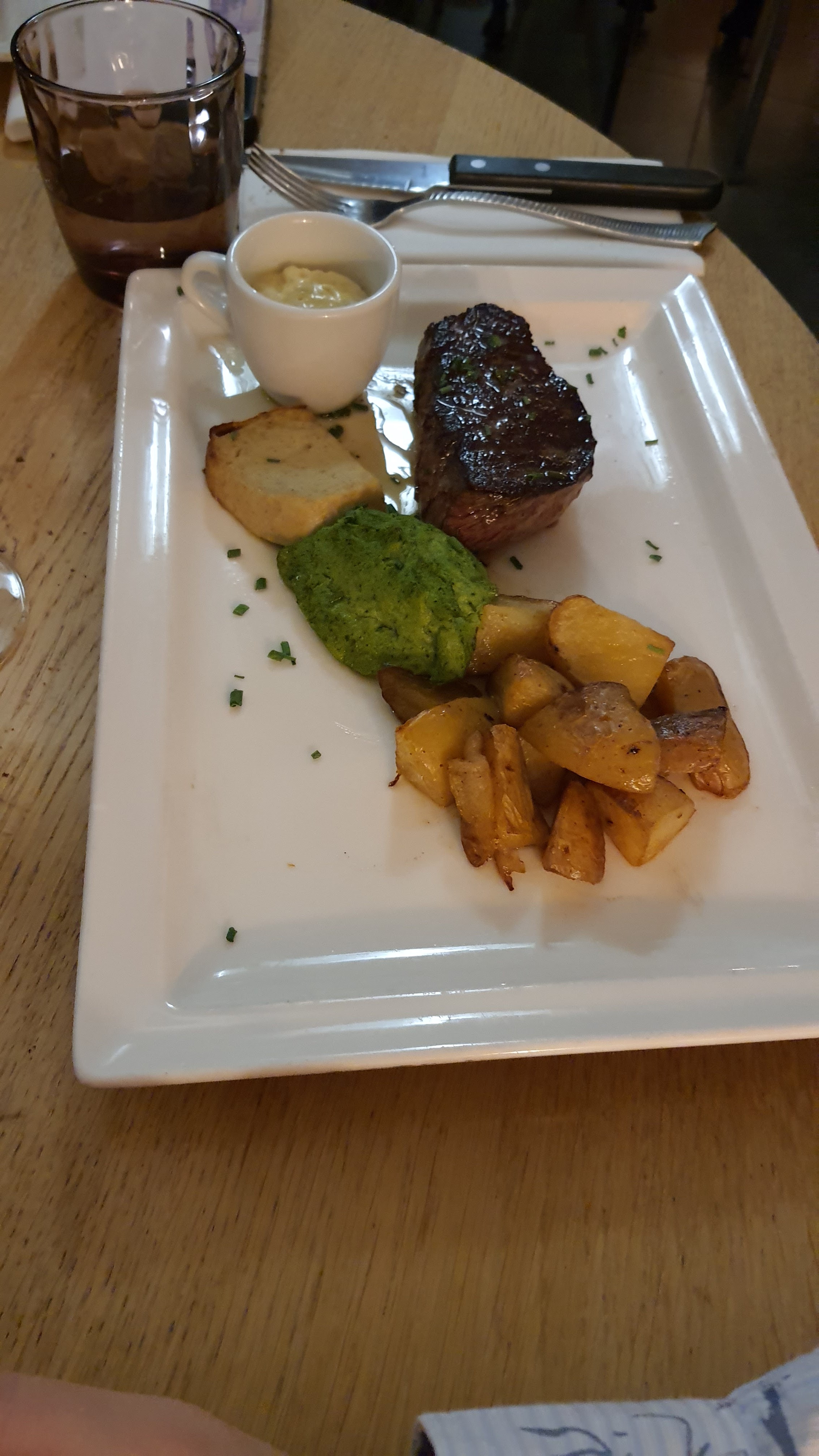 Nous étions un groupe, le service est fluide, le repas délicieux et bien chaud (ce qui n'est pas toujours le cas dans d'autres restaurants). Le serveur sympathique. Ambiance agréable avec vue sur la Saône.