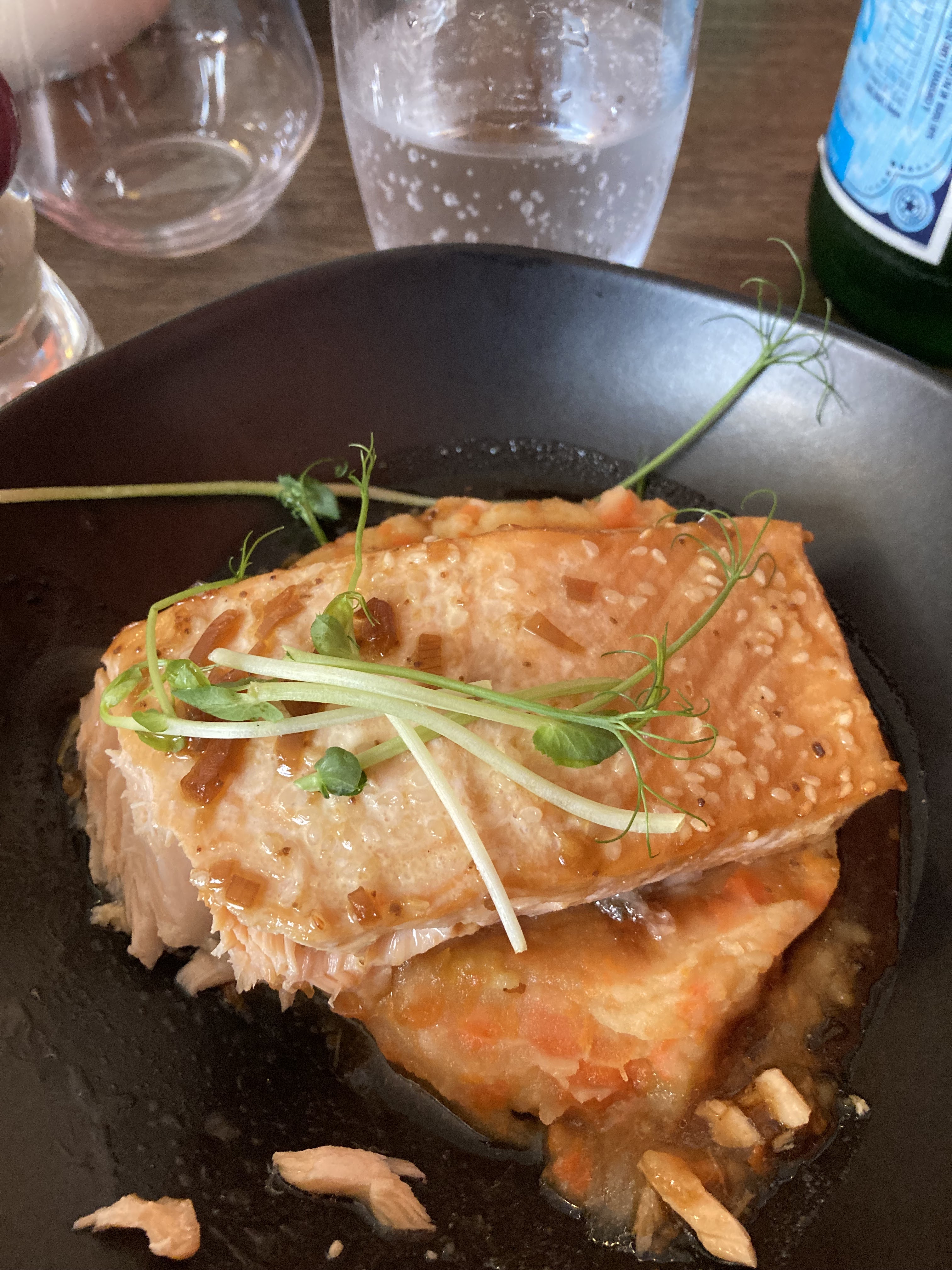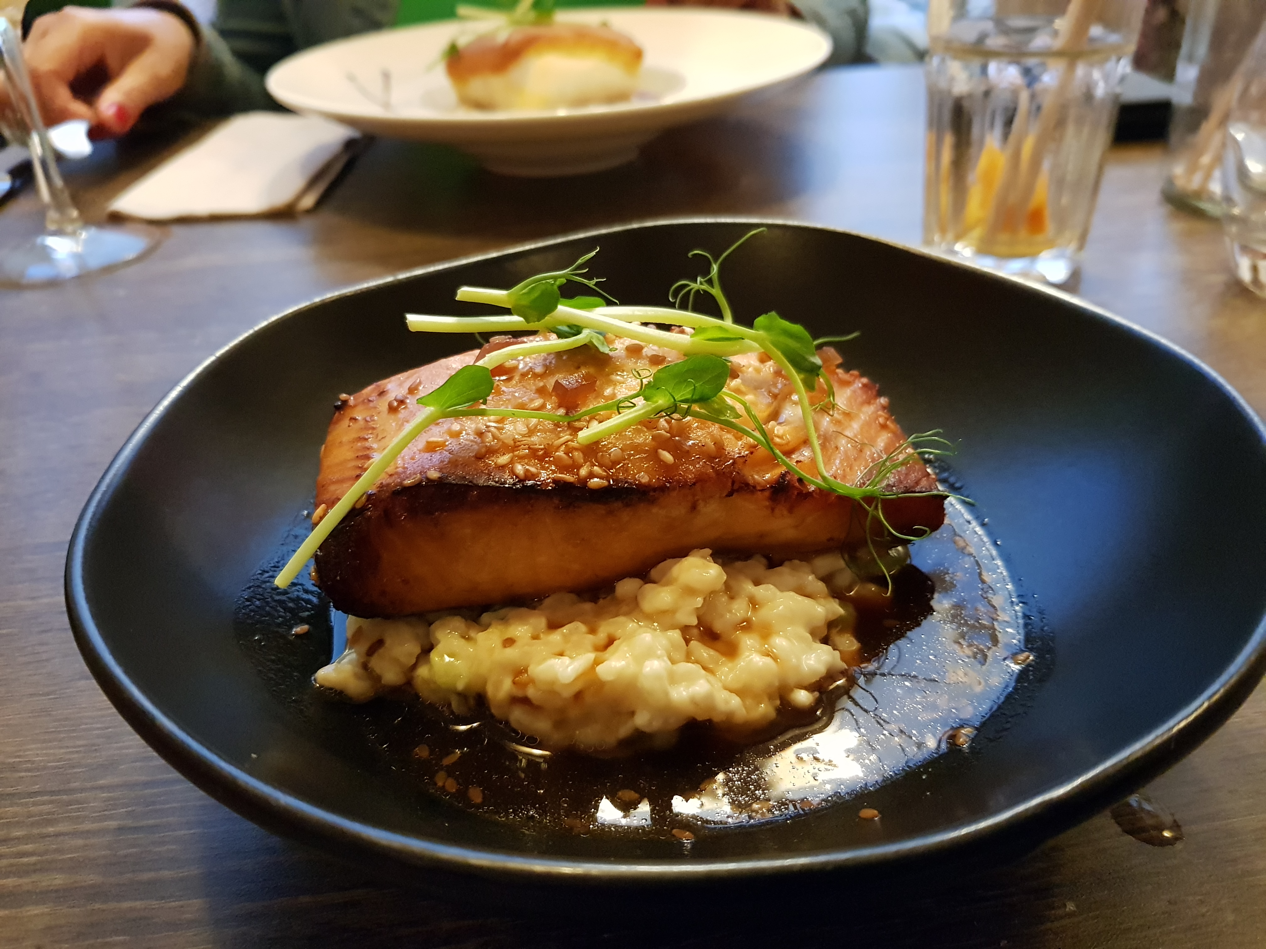 Je me suis régalée avec le saumon laqué à l'orange et risotto aux fèves 😋 Très bonne adresse 👍