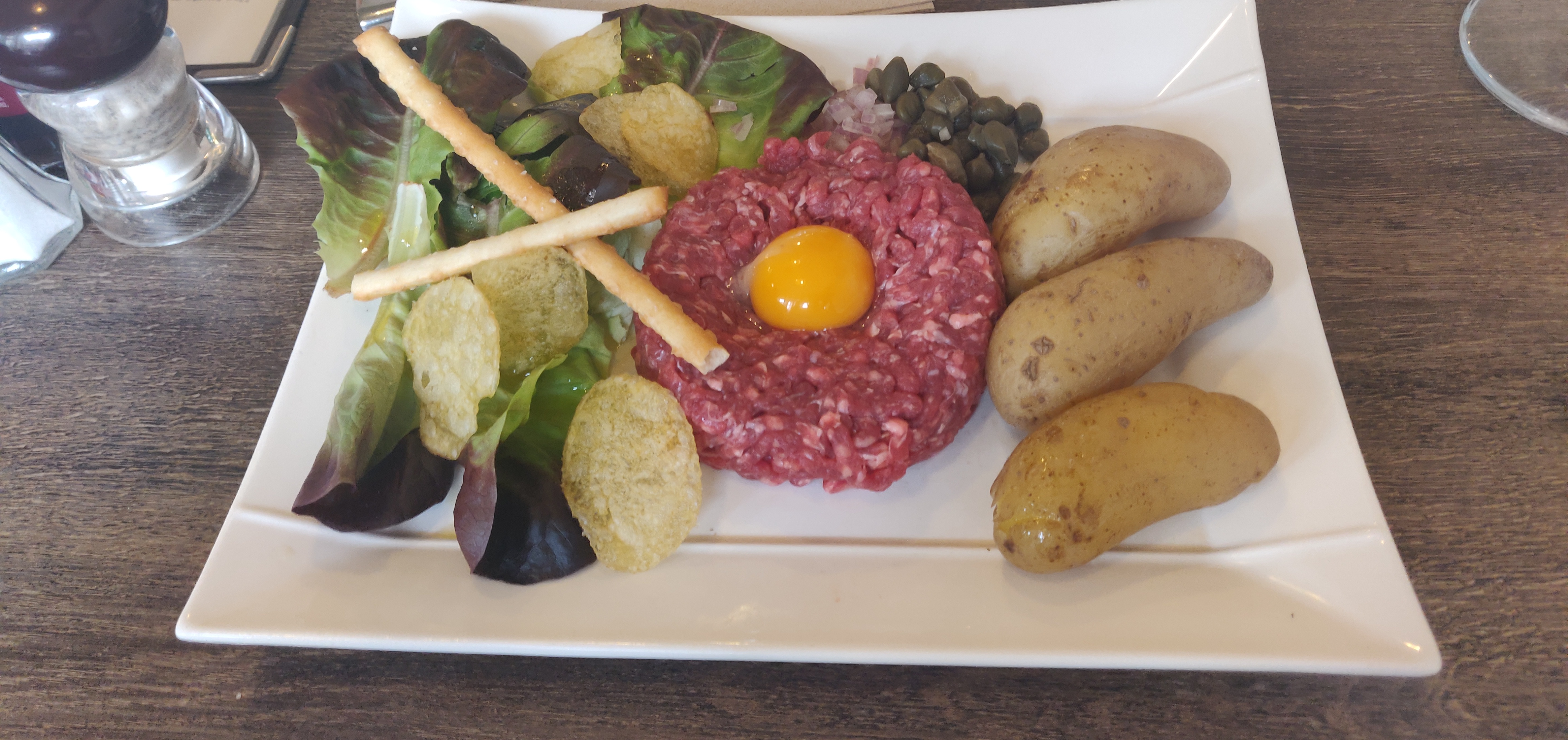 Carte mini mais top, la pièce du boucher et le tartare impeccables, terrasse à l'arrière agréable, patrons sympas 😋