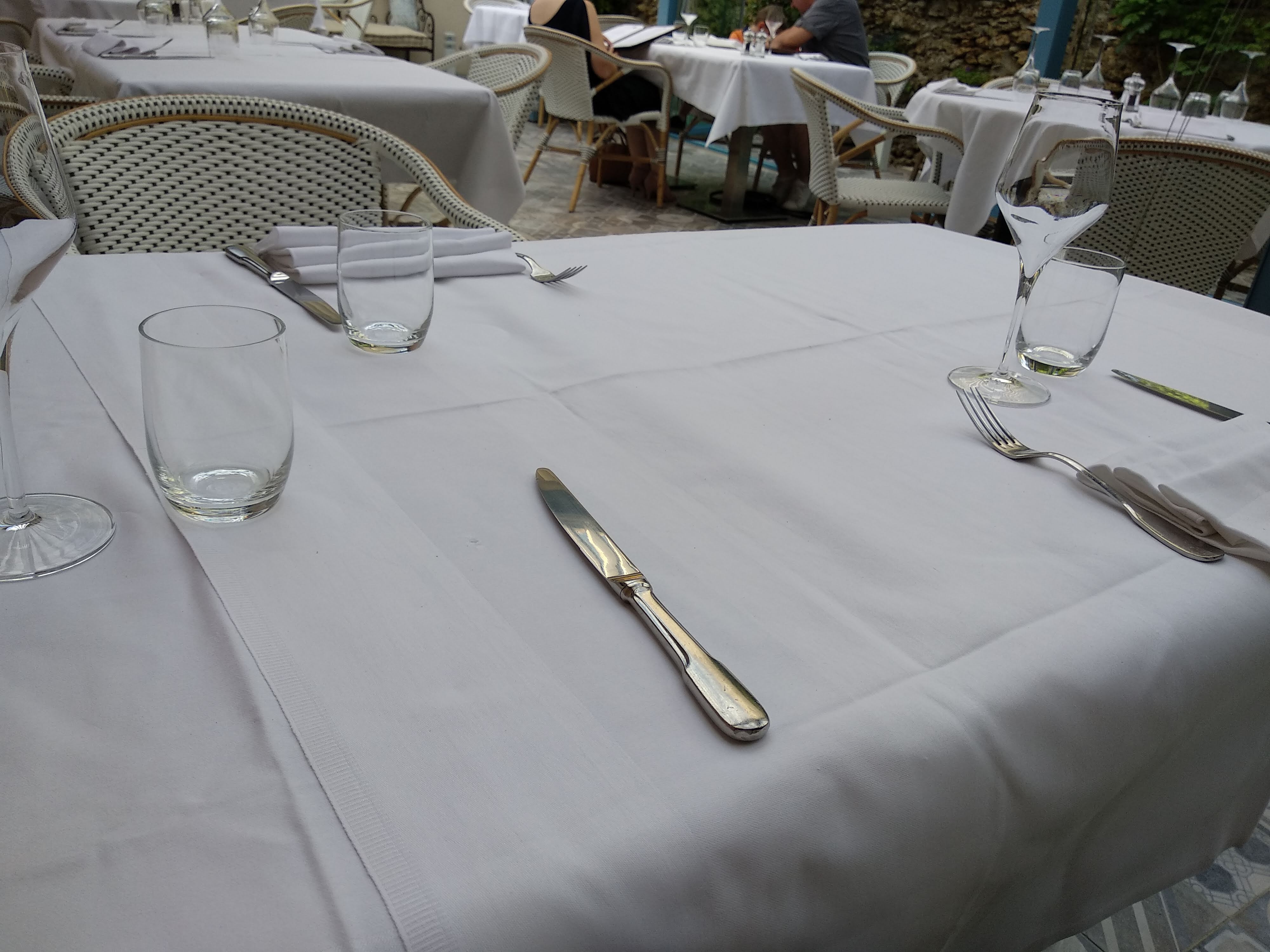 Cuisine maîtrisée exclusivement à l'aveugle et sur des tables sans nappe.