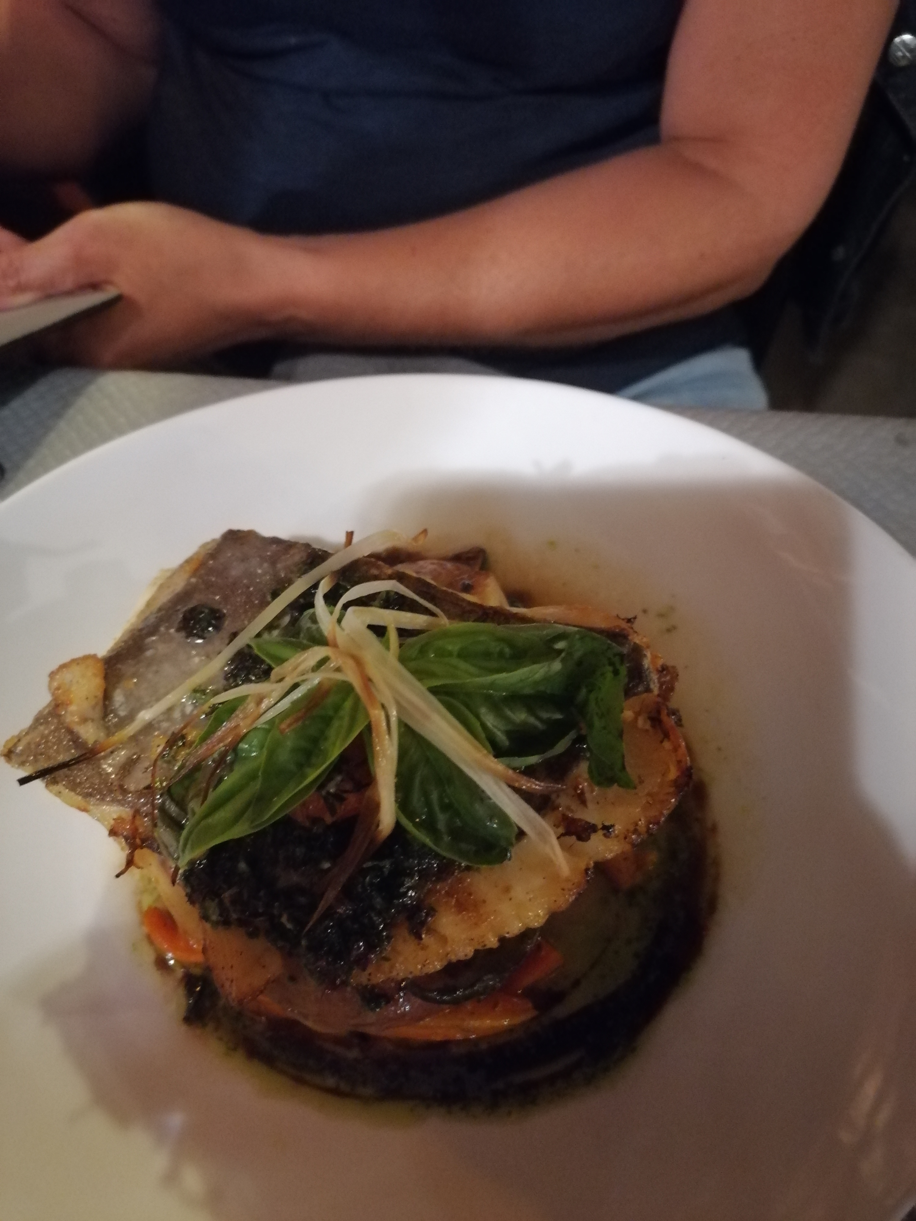 Filet de st Pierre excellent (très frais et plat copieux accompagné de petits légumes très bien cuisiné). Cadre agréable. Vin au verre bien servi.