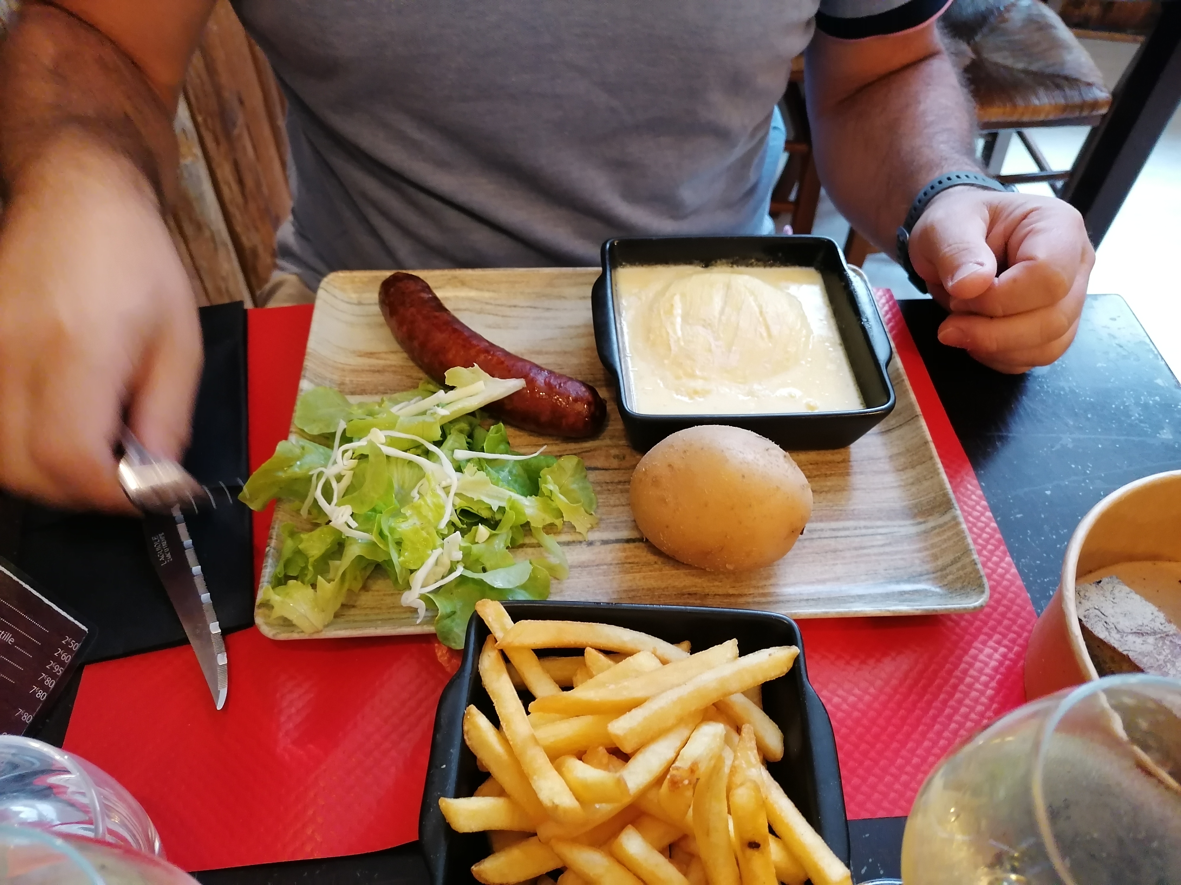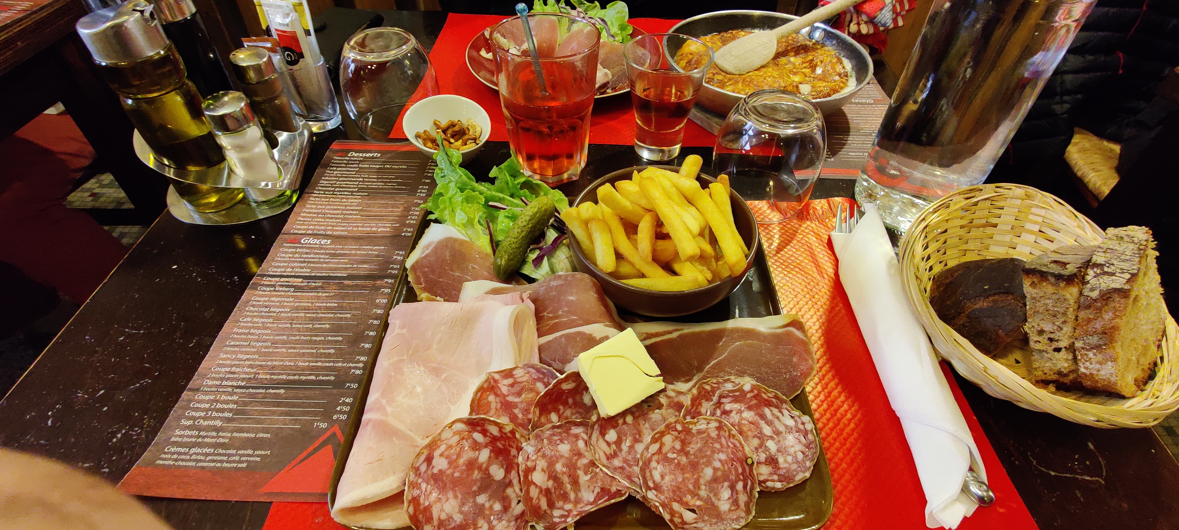 Le vin était bon ainsi que le coca. La serveuse était sympa. Pour le reste c'est ma pire expérience culinaire. Une saucisse fumé qui n'avait aucun goût à part de l'eau. Le fromage à raclette pareil. Extrêmement déçu surtout vu le prix payé. Je ne comprends pas qu'on puisse servir ça.