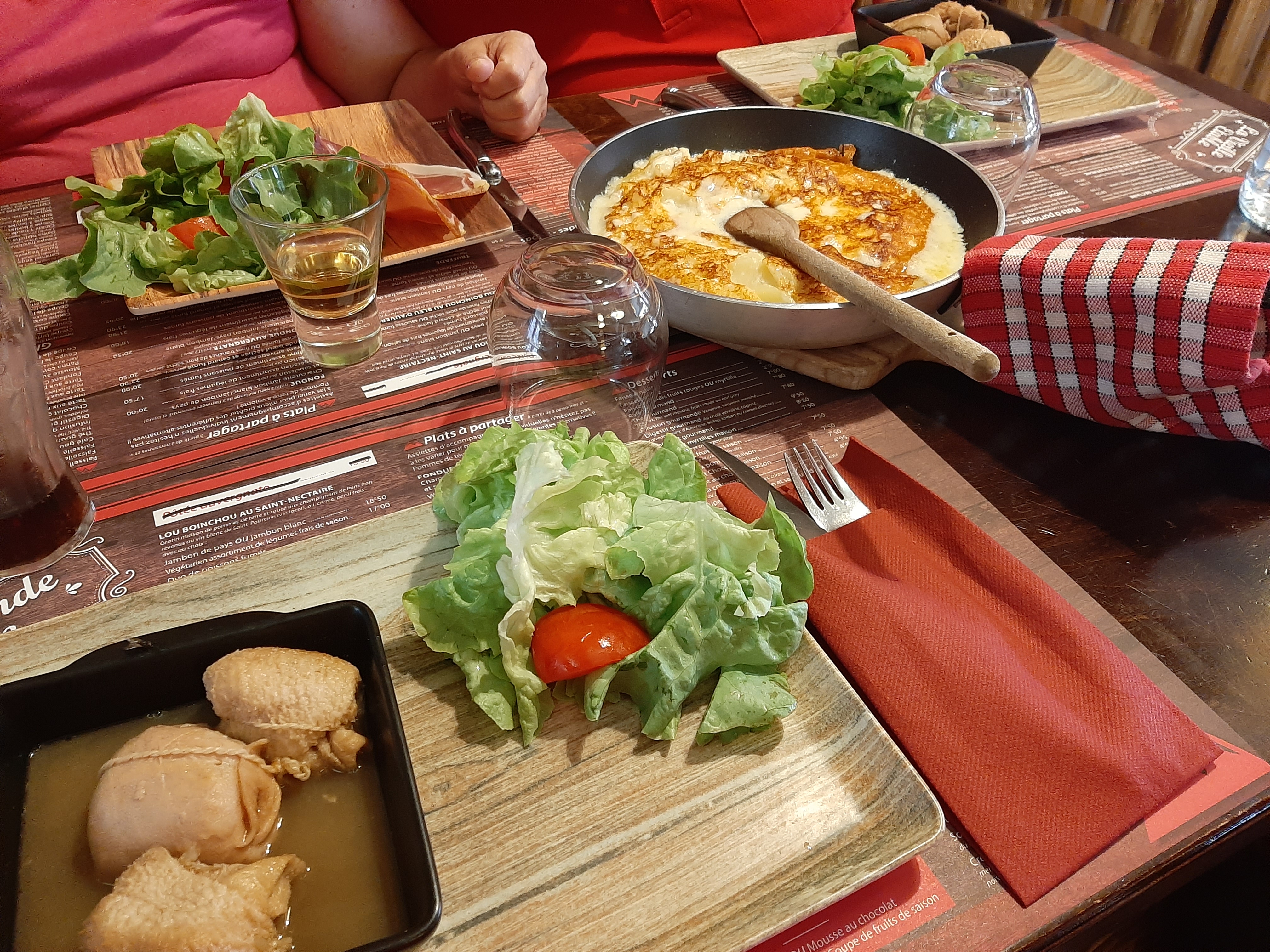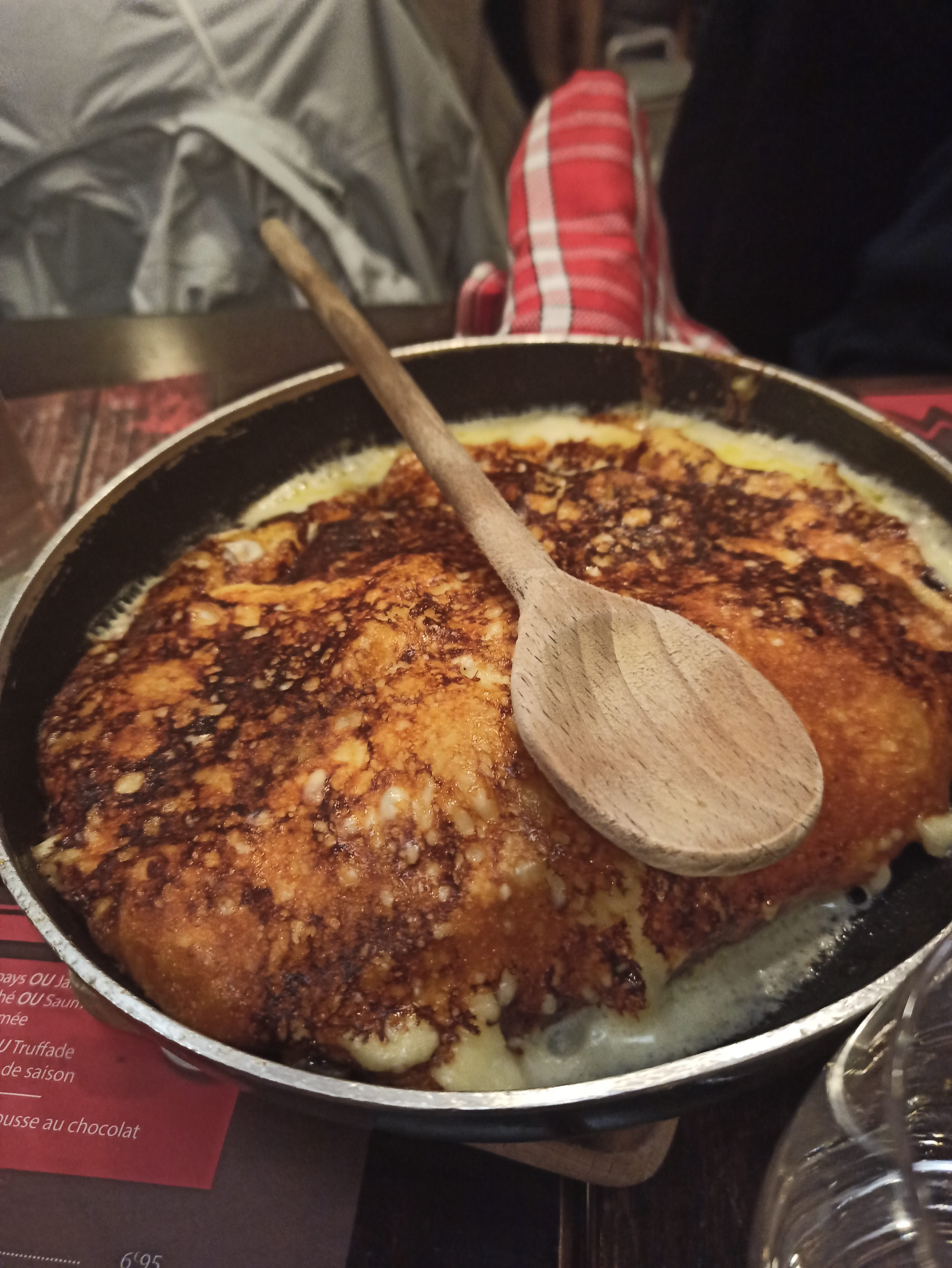 Je suis assez mitigée. Nos truffades étaient peu garnies en fromage par rapport à d’autres restaurant. La table d’à côté s’est également plainte que leur fondue n’était pour 1 personne, pas pour 2 et ont dû prendre un supplément de fromage. Le goût était présent mais j’aurais aimé plus de fromage car l’équilibre avec les pommes de terre n’y était pas. Personnel chaleureux.