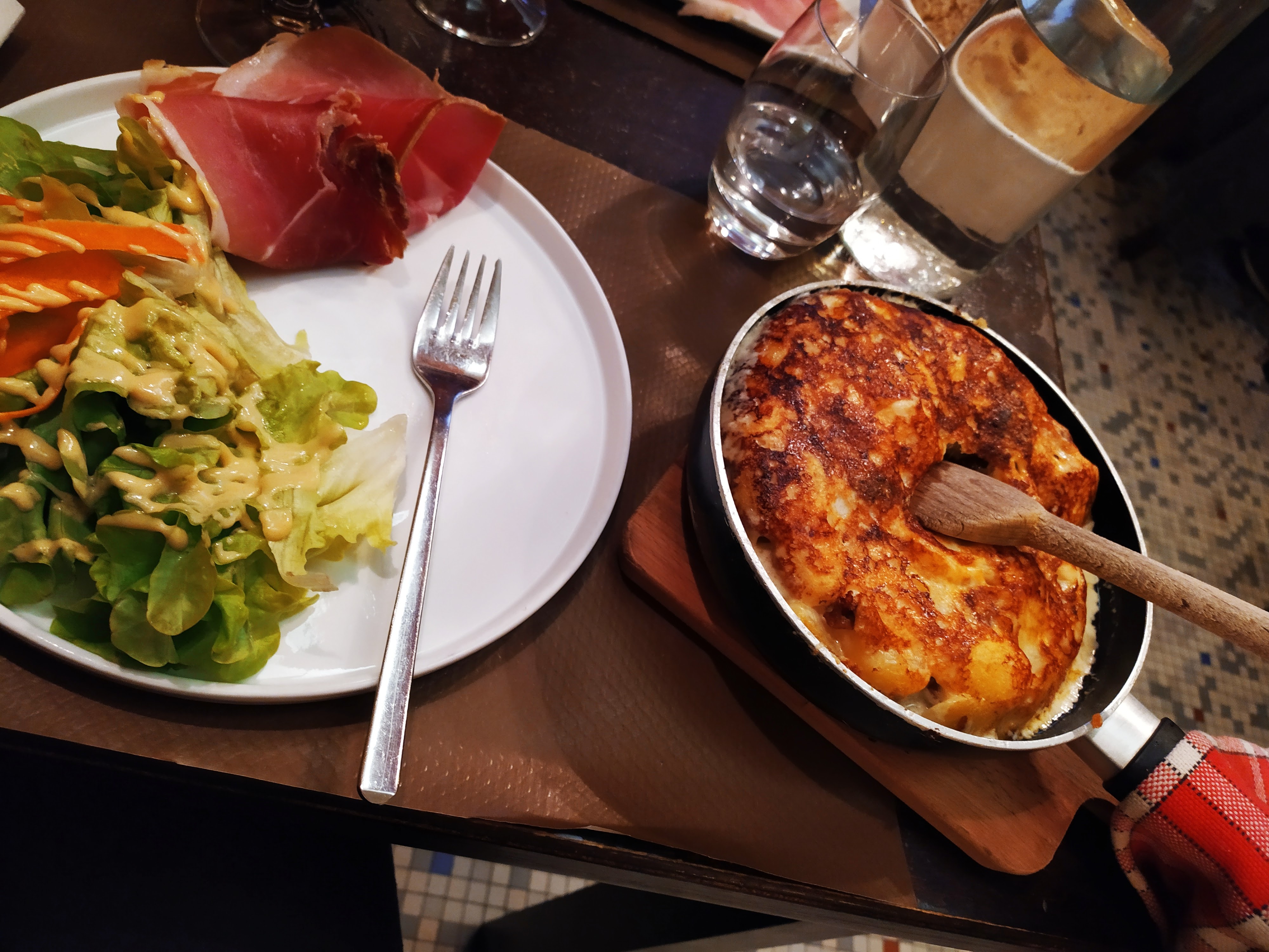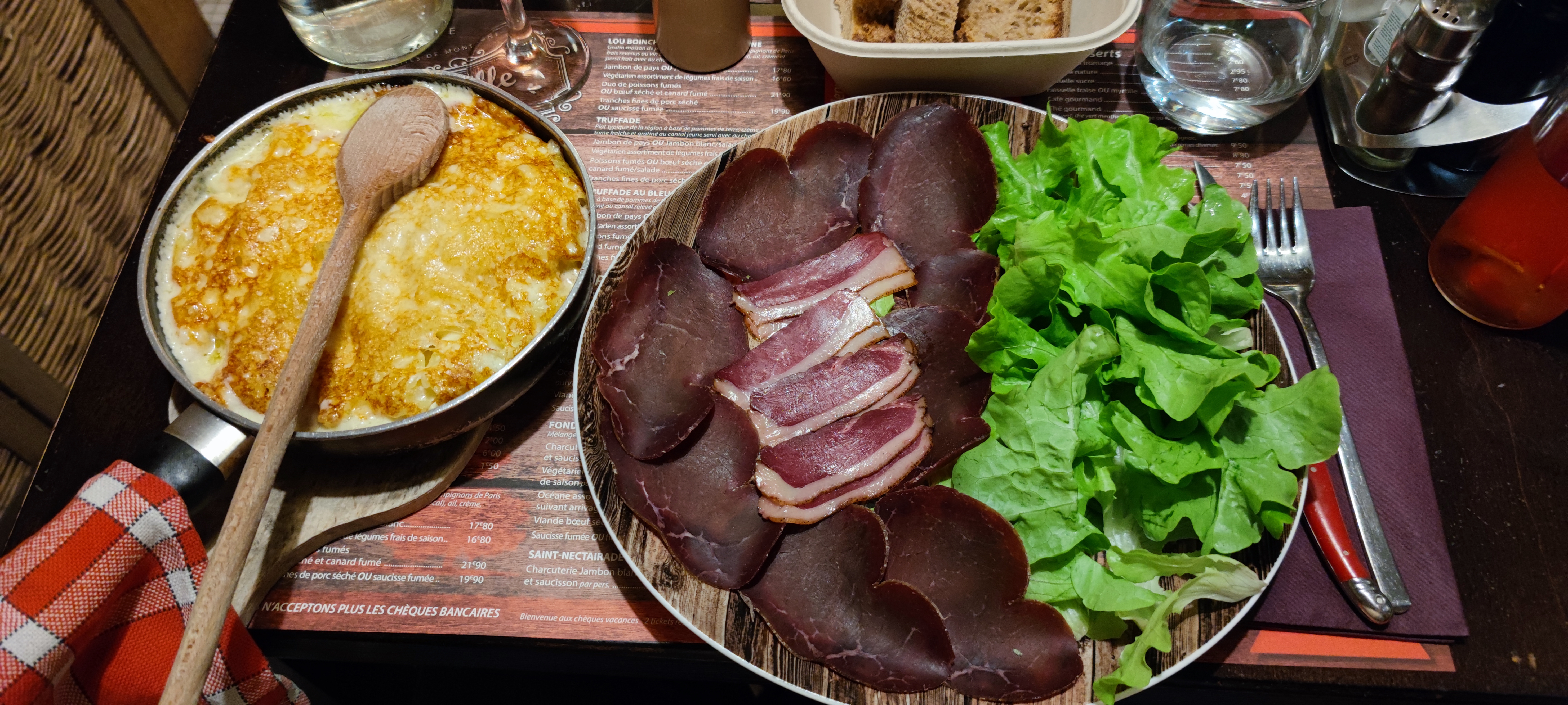 Délicieux ! Truffade classique avec accompagnement de jambon sec, l'ambiance contribue à l'appréciation du plat ! Les traits sont raisonnables et le personnel très agréable !