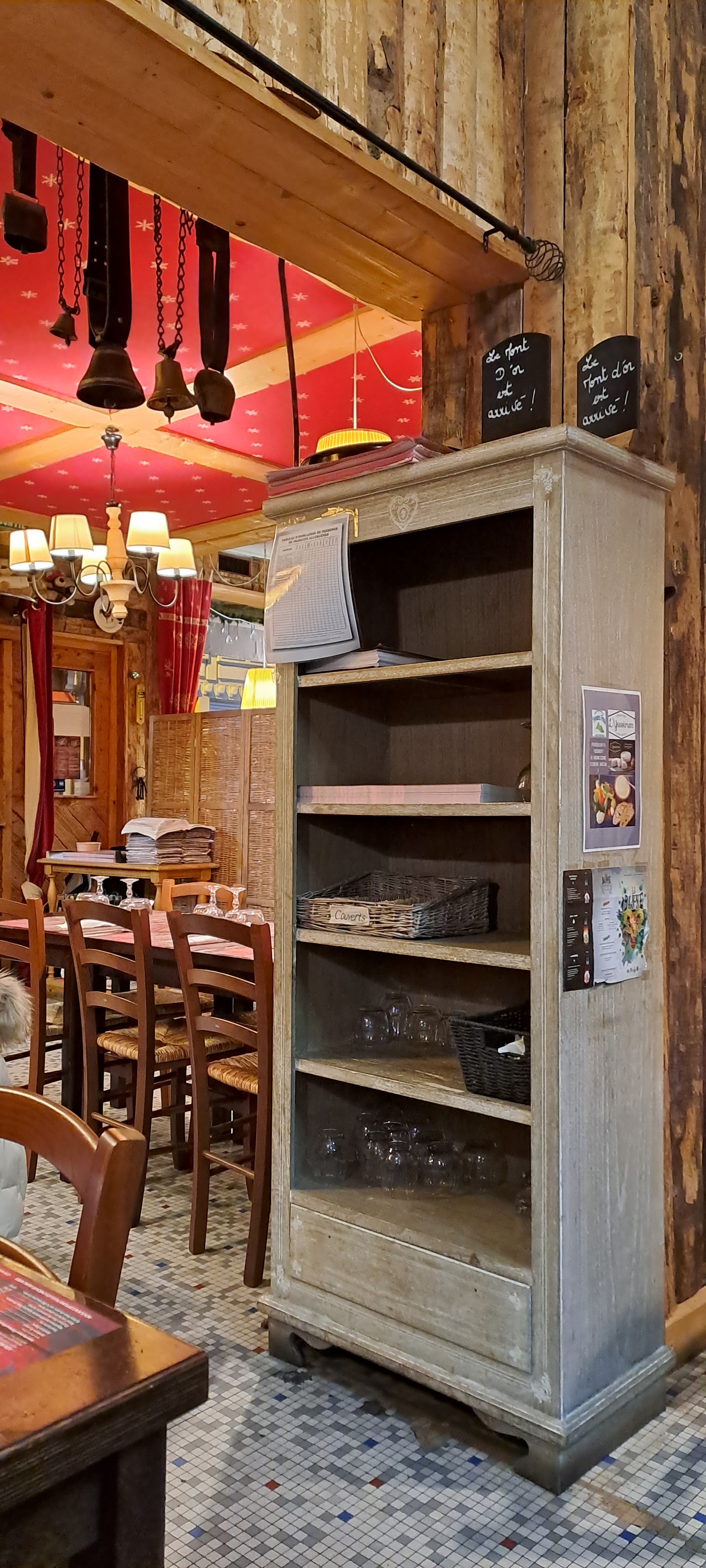 Il est nécessaire de réserver en haute saison. Le cadre est chaleureux, ambiance chalet de montagne. Nous étions deux installés sur une petite table dans un coin, nous n’avons malheureusement pas pu profiter pleinement de l’ambiance de la salle. Les plats sont rustiques, peu raffinés mais très savoureux et bon marché. Il est certainement préférable d’y venir en grand comité. Je recommande les glaces artisanales en dessert, succulentes !