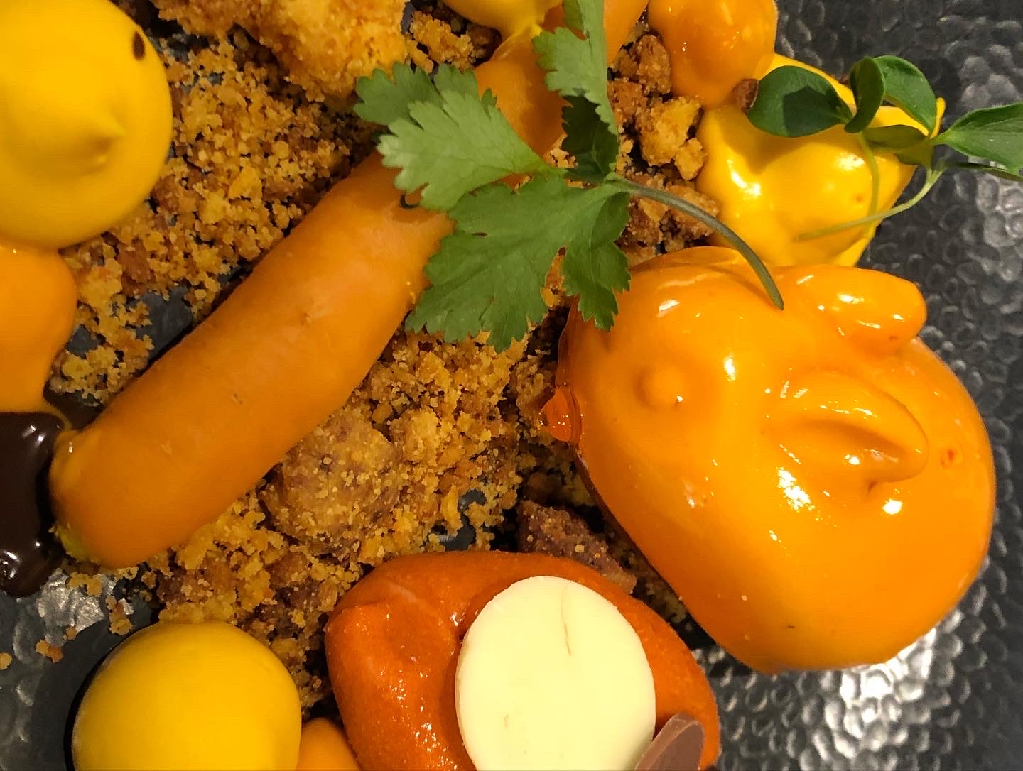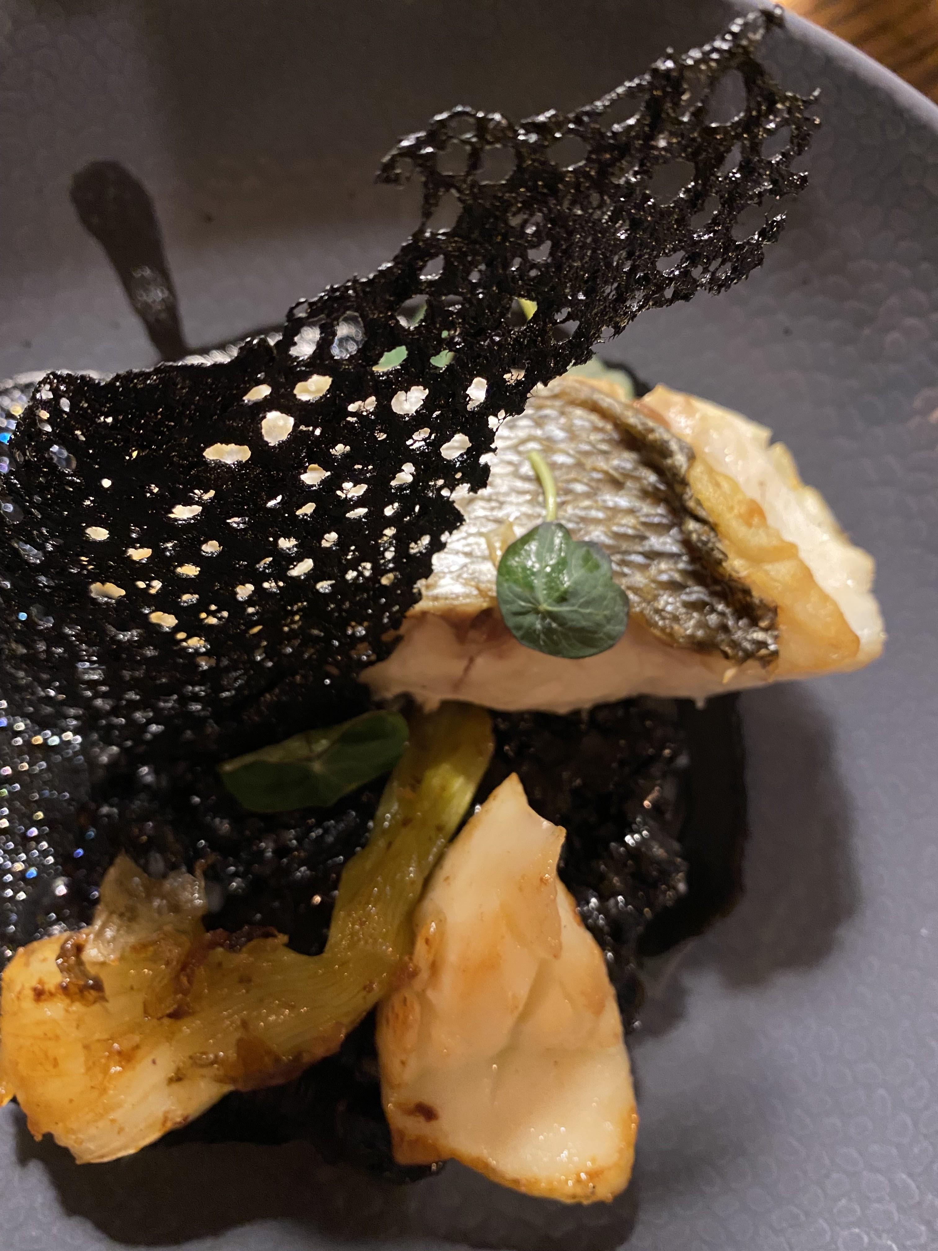 Un excellent repas , de très belles assiettes avec beaucoup de travail et de la générosité ! Des associations de saveurs subtiles : yuzu , « feuilles d’huître », wazabi, tagète… Une mention particulière pour les desserts originaux et savoureux. Désolés encore pour les miettes sous la table mais c’est le signe que le repas a été fort apprécié ! Merci pour l’échange avec le chef qui a à cœur de faire partager sa passion.