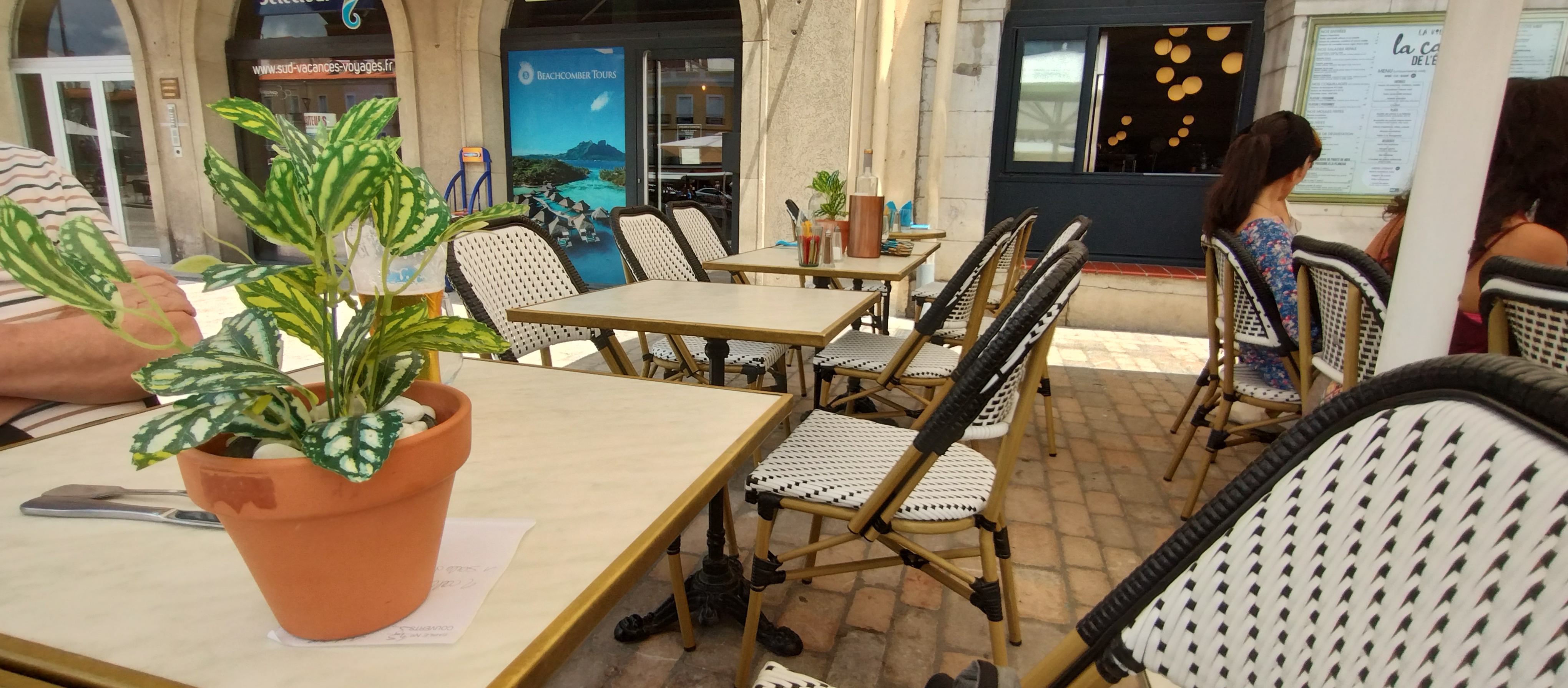 La terrasse longeant les tables restent une valeur sûre Mais le repas reste très moyen