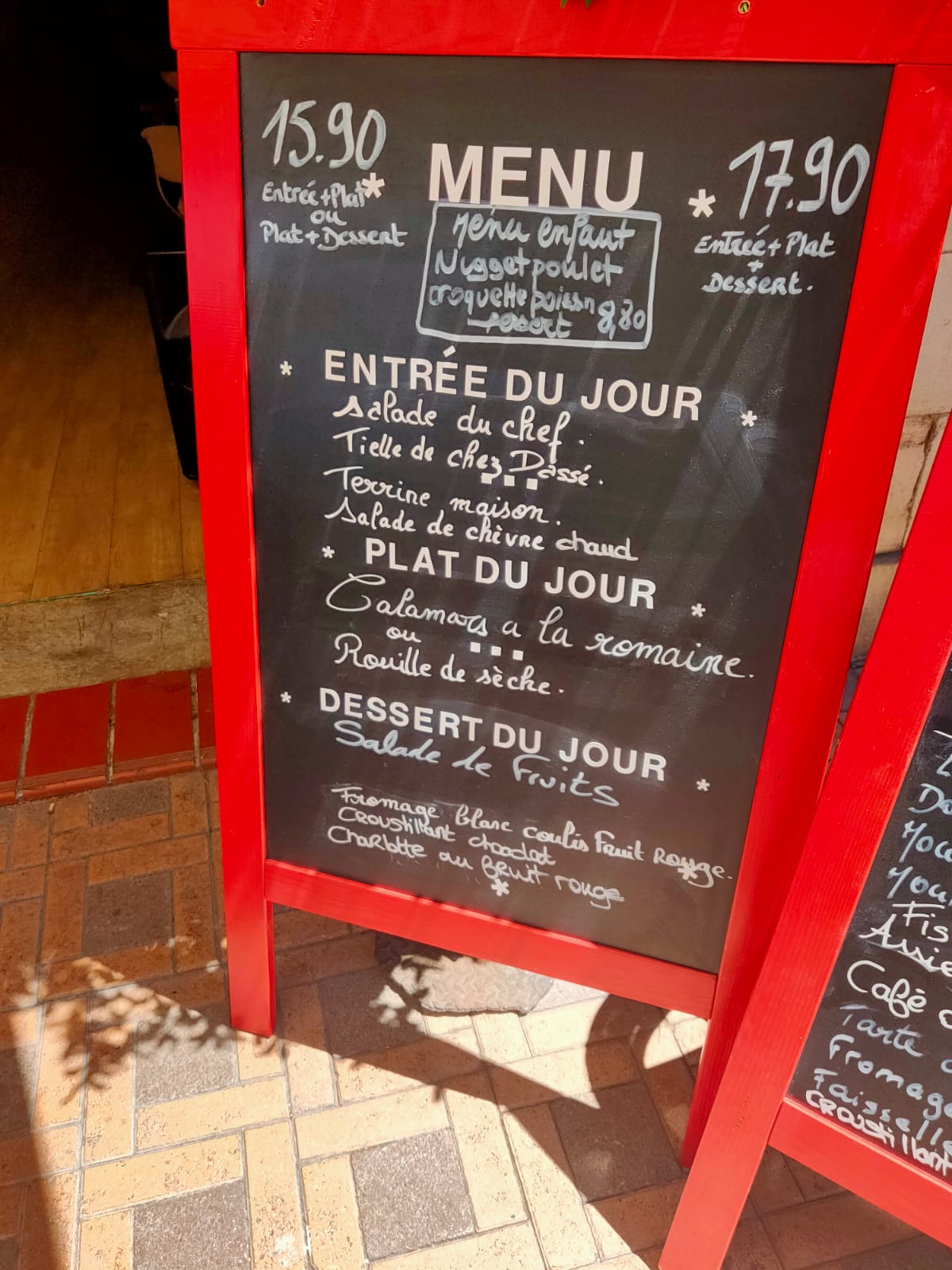 Menu du jour de bonne qualité avec des spécialités Sêtoises. Petit bémol pour le dessert, la salade de fruits était minuscule, c'est dommage. Autre problème, pour permettre de libérer la table plus rapidement, la serveuse attendait à côté de moi que je termine mon assiette pour débarrasser le premier plat.