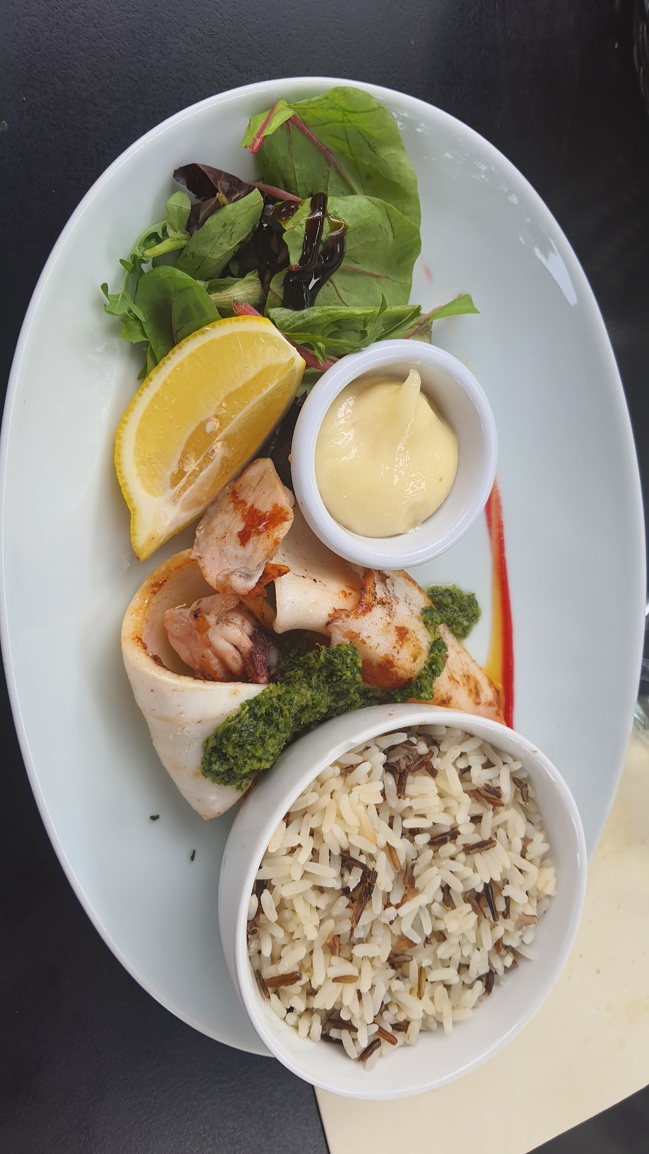 Le cadre est magnifique vue sur la mer une très belle déco du resto Personnel hyper sympa et super bien manger .. je vous le recommande