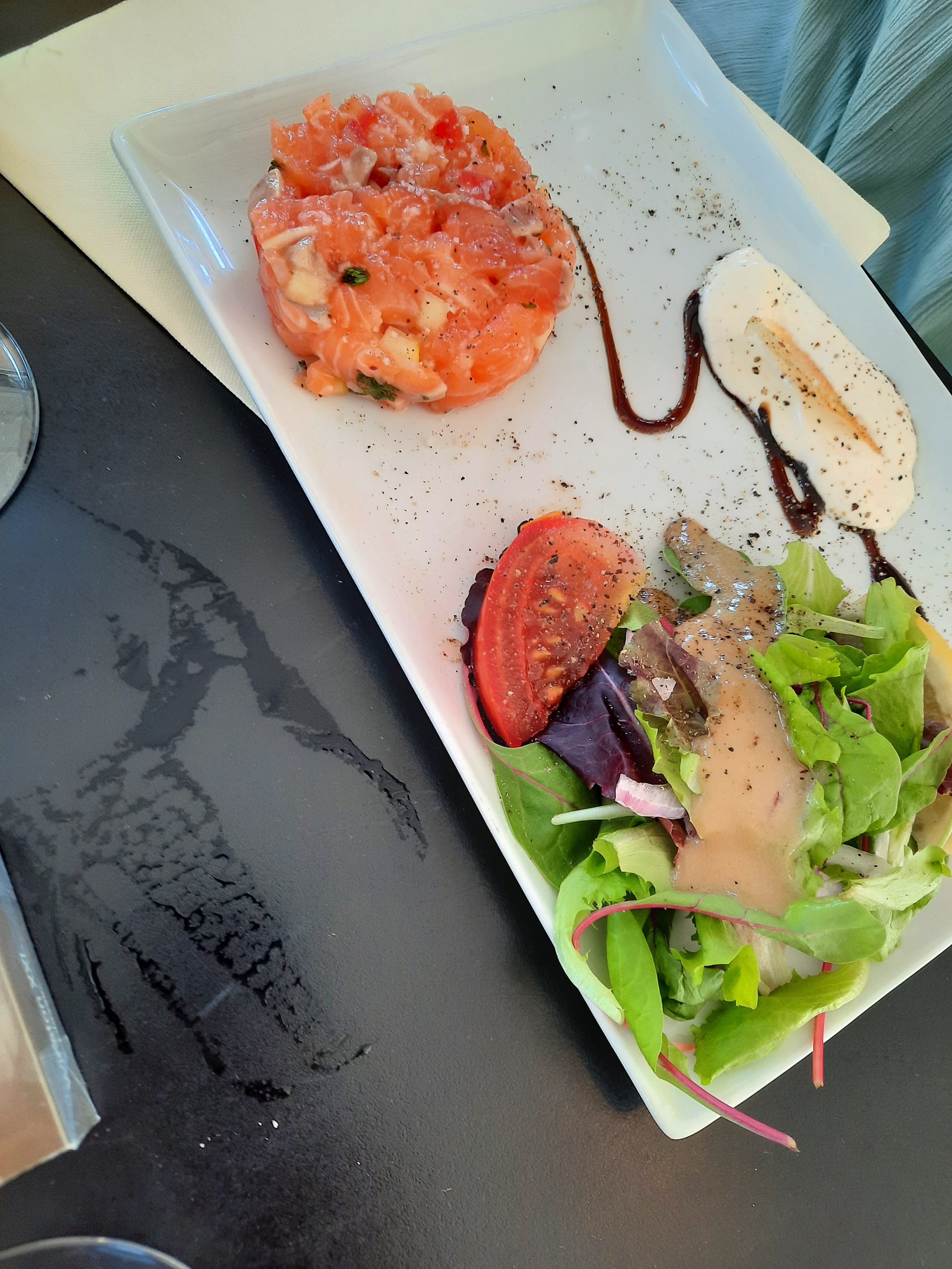 Il y a peut être la belle vue sur la mer mais il n’y a pas la coordination. Mon plat chaud est arrivé je n’étais pas encore débarrassé du plat froid. Je recommande pas du tout les salades elles sont très légère et non copieuse pour le prix.