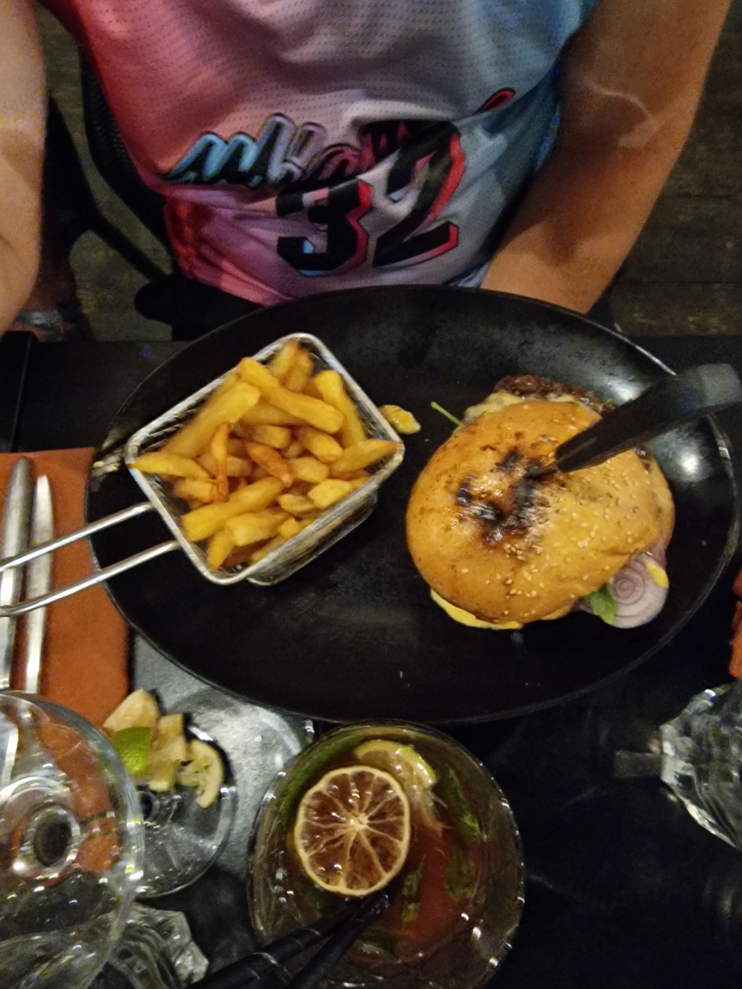 Nous sommes venu dîner le 30 août avec ma compagne, nous avions pris un Burger cheddar coulant ( qui n’est pas coulant du tout) car le cheddar est en sauce et non une tranche, ainsi il n’y en a que très peu à mon goût et une pizza texane qui elle, était vraiment bonne, le personnel était mal organisé, tout le monde venait nous servir chacun leurs tour et ils étaient un peu perdu ( 30 mn pour avoir une carte). A part cela l’ambiance étais sympathique et le resto plutôt rempli et bon rapport qualité-prix.