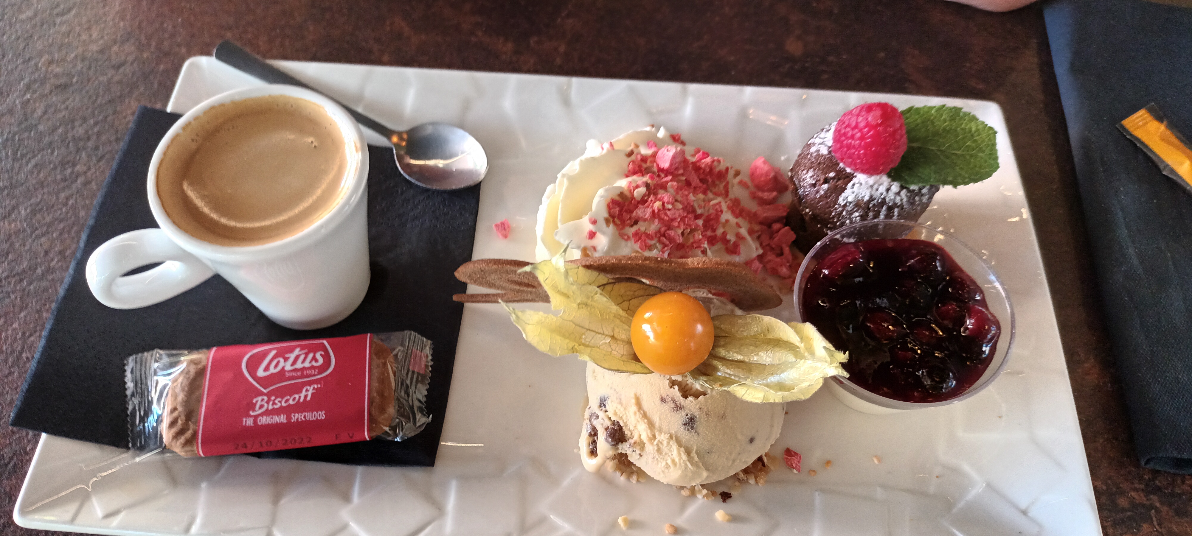 Plat du jour excellent. Coupe glacé géante! Café gourmand généreux. Personnel réactif et accueillant.