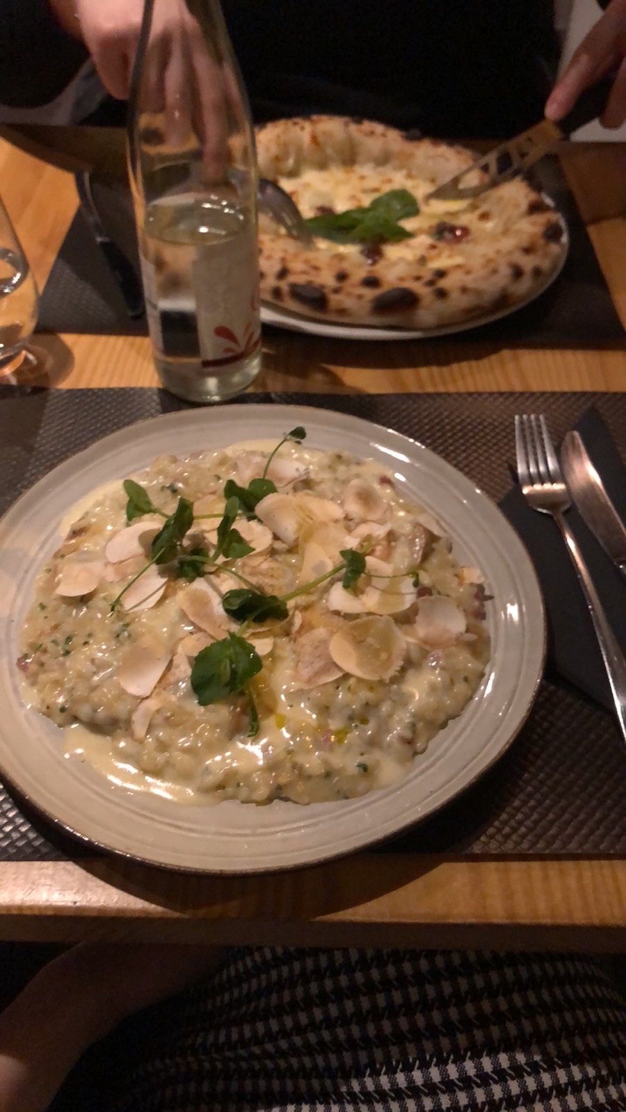 Nous sommes venus pour un dîner pour mon anniversaire. L’ambiance et le service sont excellents, personnel bienveillant et souriant ! La pizza et le risotto aux champignons étaient délicieux tous les deux !