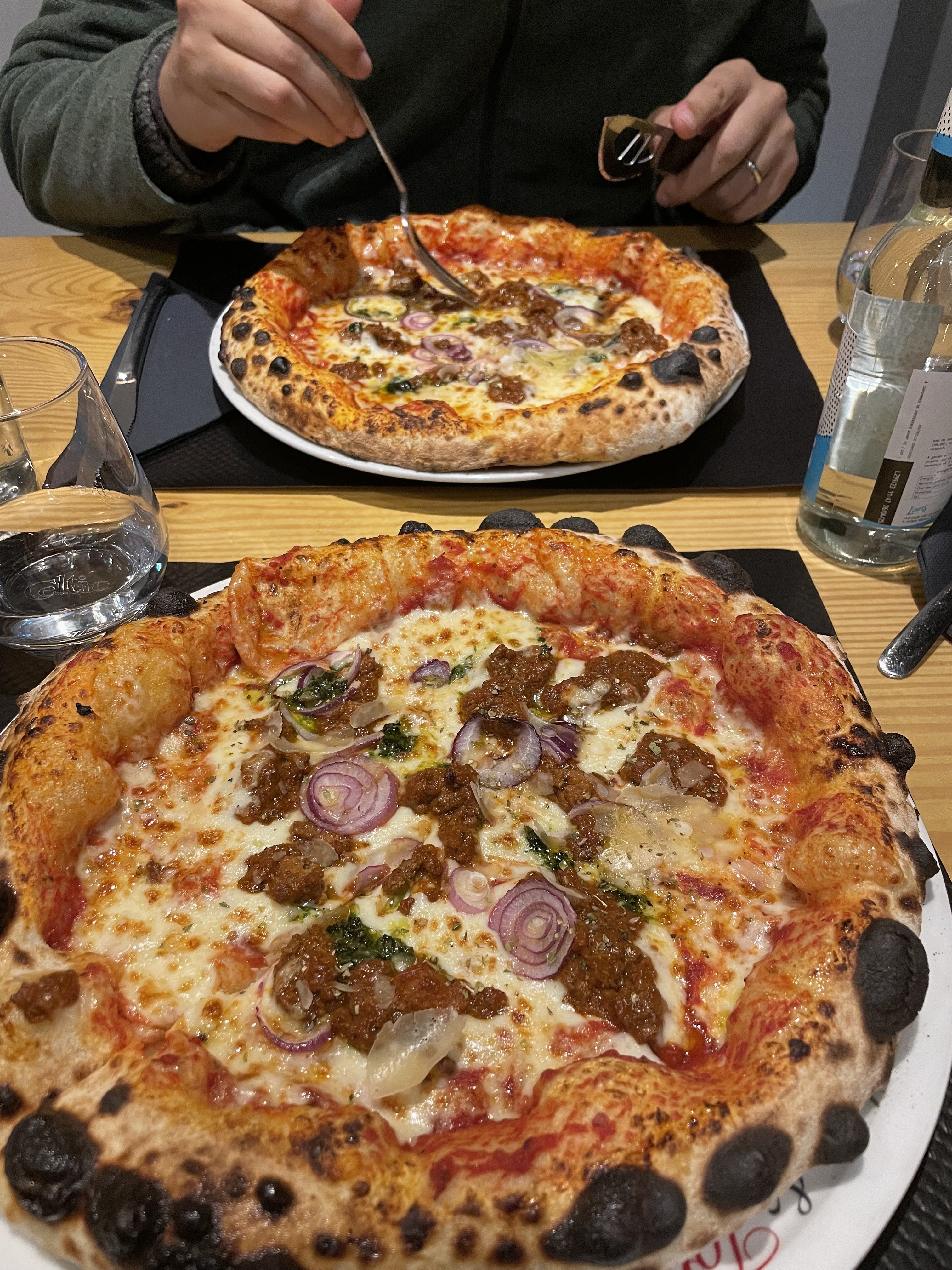 Magnifique pizza (des vrais pizza) ambiance chaleureuse serveuse au top très aimable restaurant propre franchement rien à dire