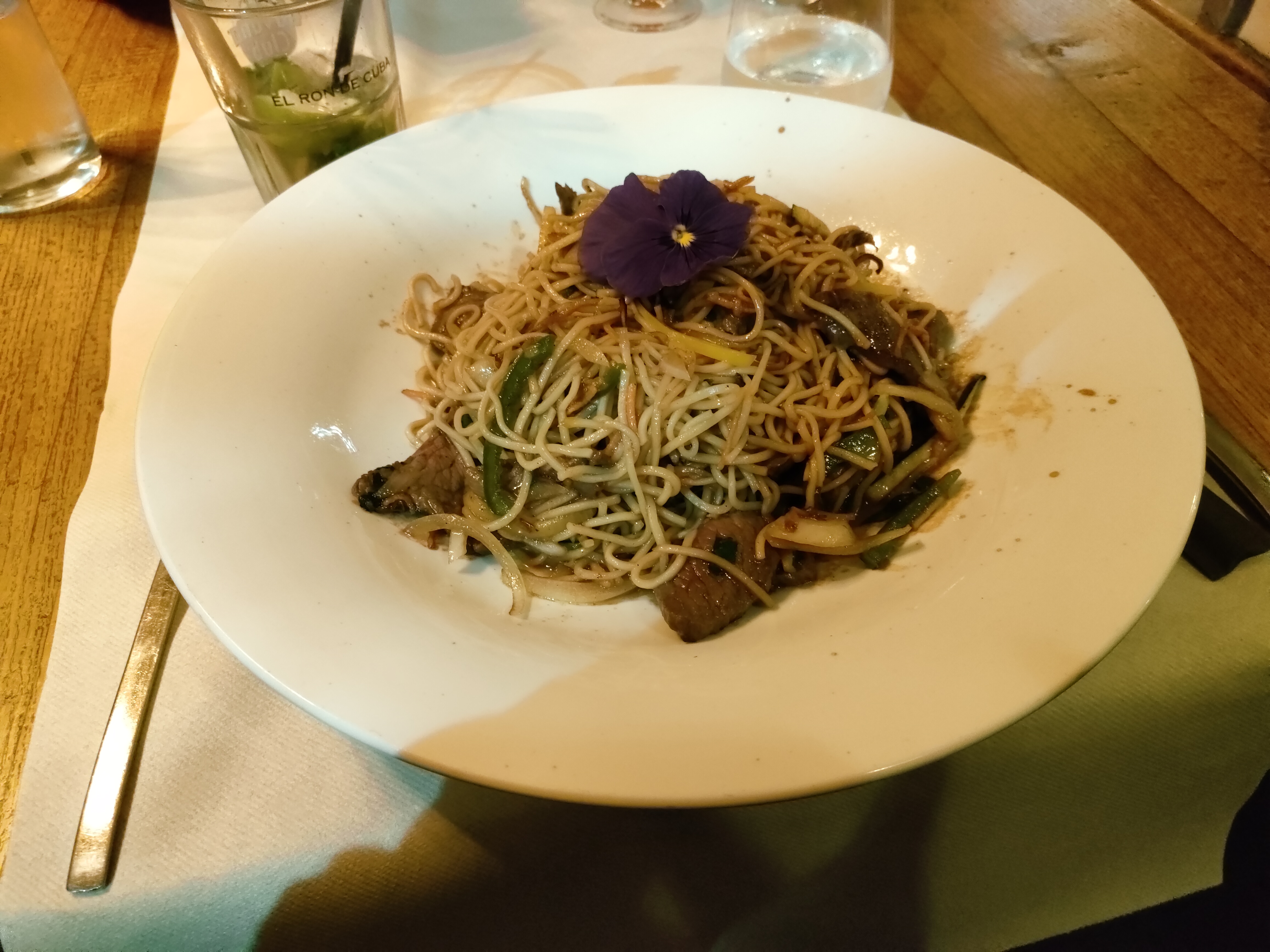 Nouilles chinoises au bœuf, goûteux et copieux, desserts choux croquants t bon. Emplacement en terrasse sympa et ombragé