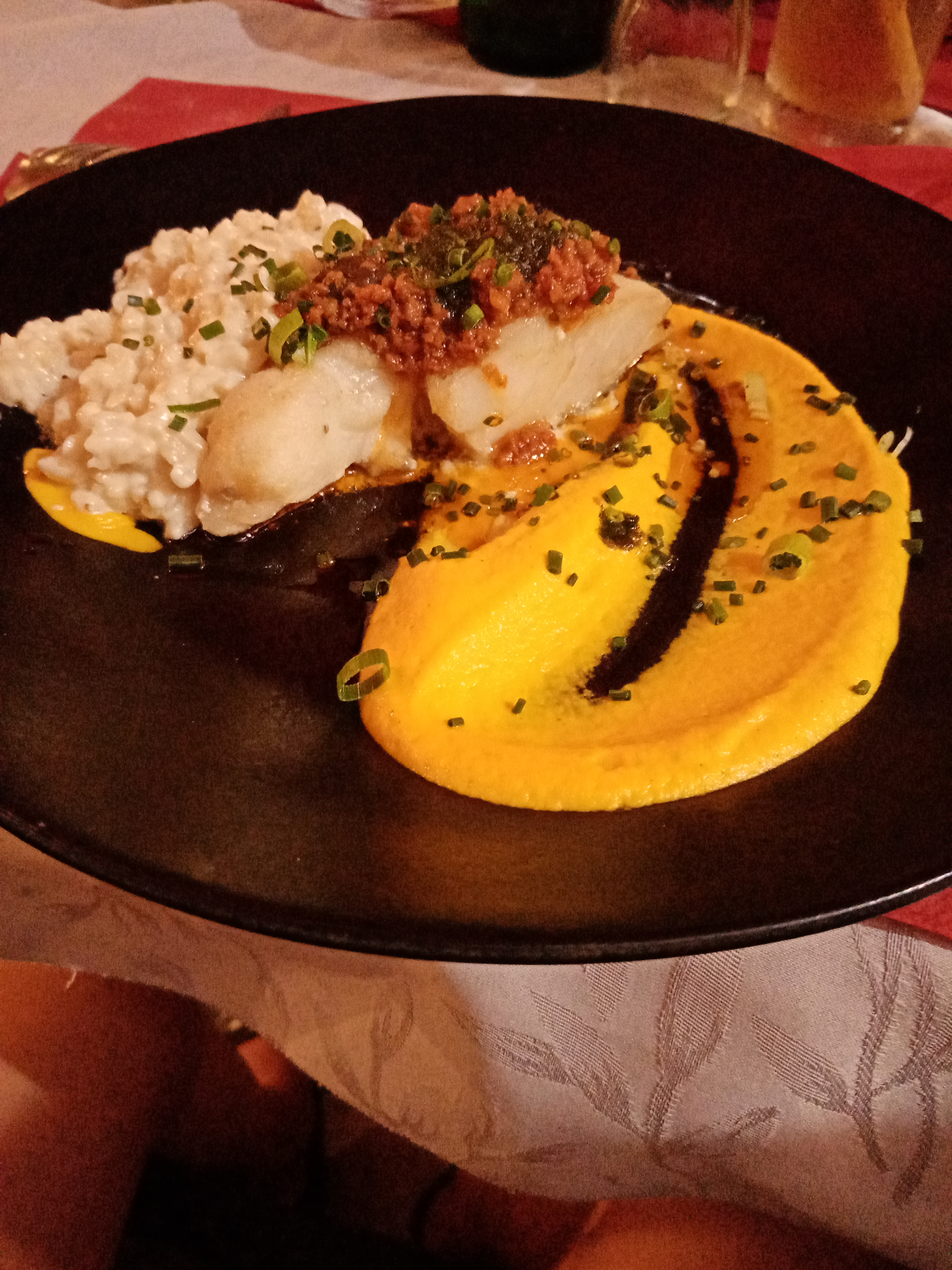 Plats pleins de saveurs, notamment le turbo grillé et son risotto aux cèpes et pour finir un crumble aux figues.