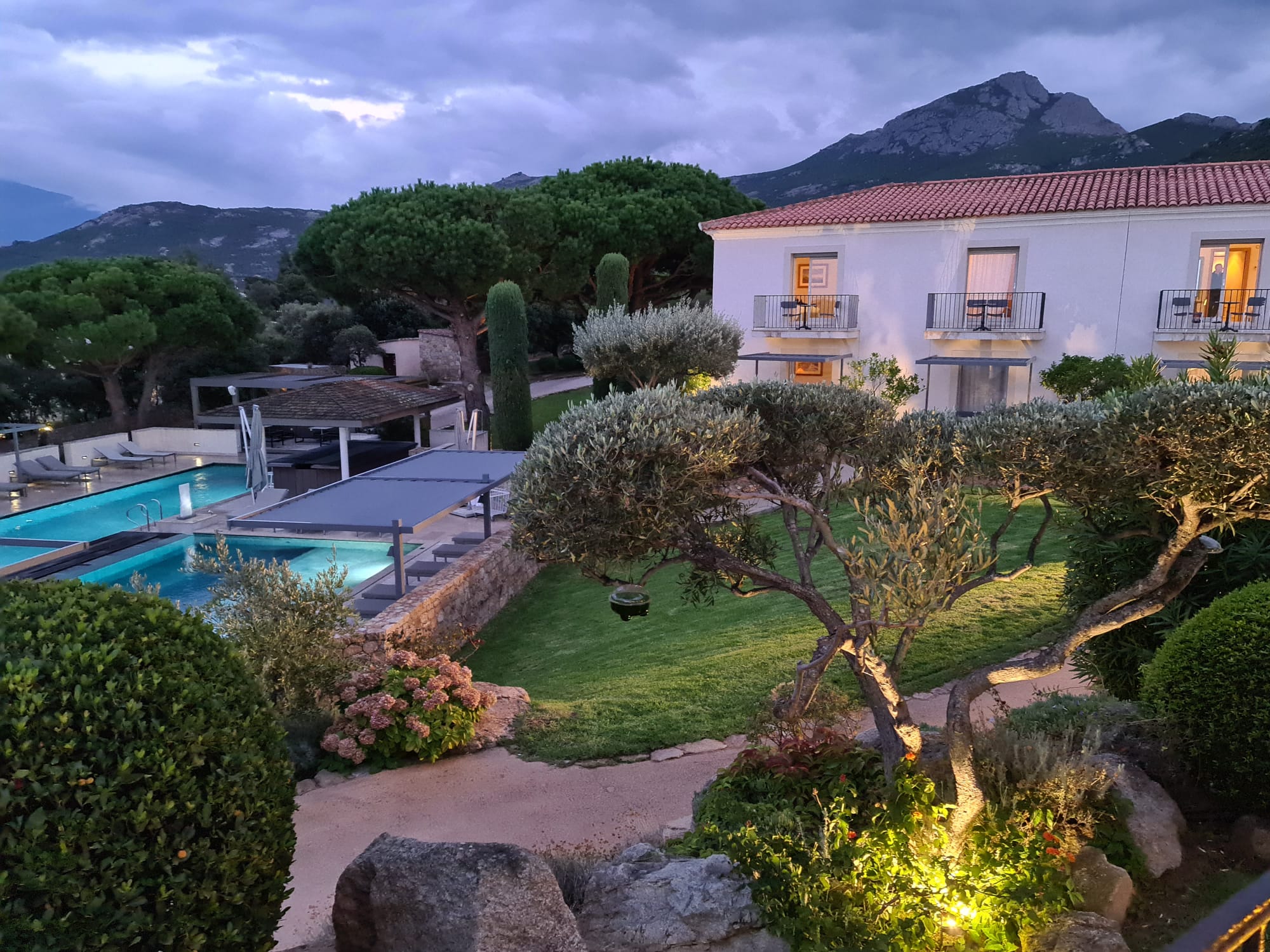 Dans un lieu magnifique à quelques encablures de la plage, l’hôtel est superbe et calme. Il offre une vue splendide sur la mer et le littoral corse. Cet hôtel de charme vaut le détour et celui d’un séjour. Petit bémol : le service est un peu froid et si voulez un café après 11h c’est pas possible