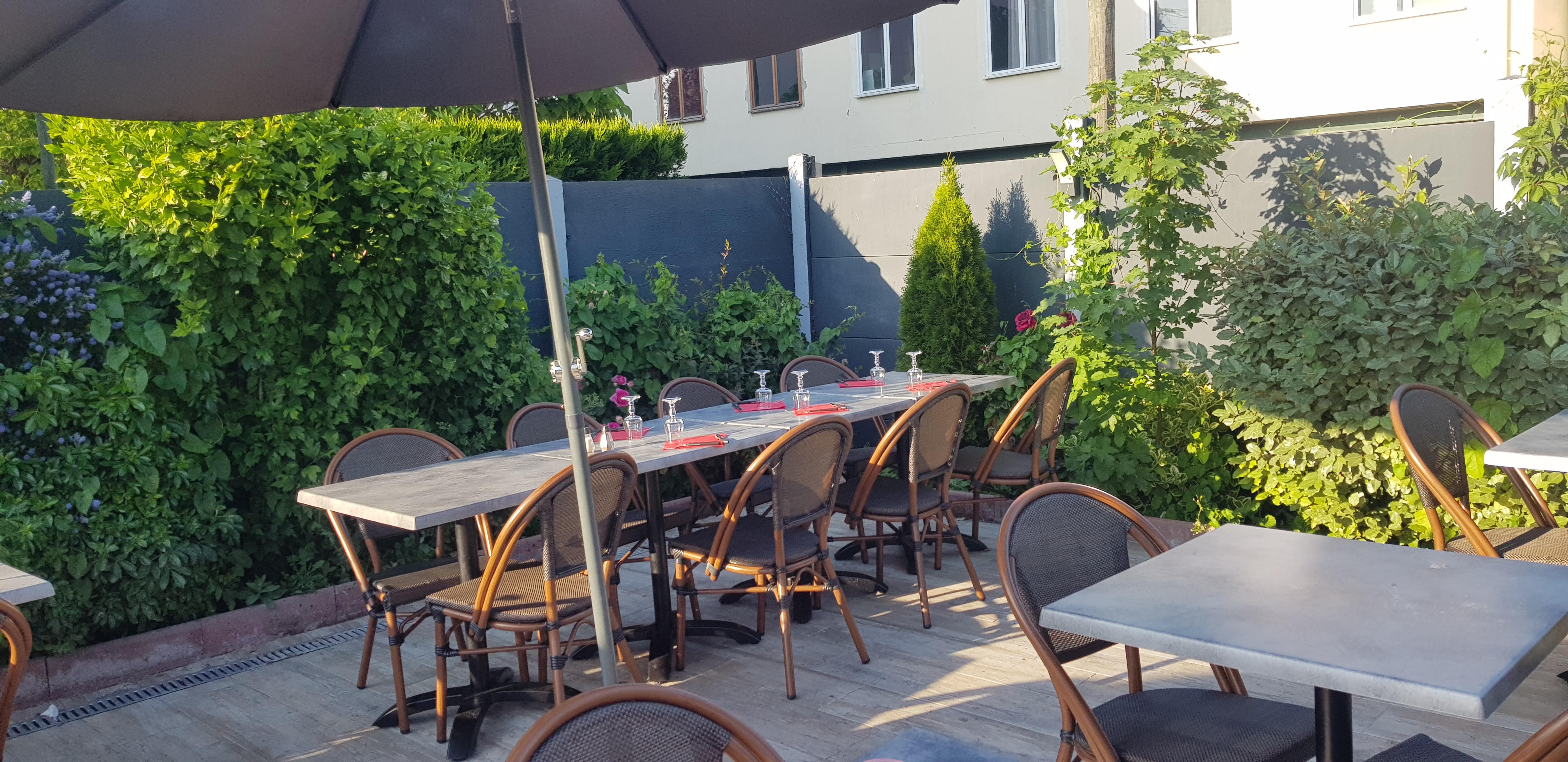 Restaurant ou l'on a mangé à l extérieur la terrasse est très grande et la place ne manque pas le personnel et très mais très agréable souriant et poli ce qui ce fait rare Quand au plat nous avons pris des salades ce qui est de saison et très rafraîchissant elles sont bien fourni et généreuse et le prix et tout à fait abordable vous pouvez y aller les yeux fermés