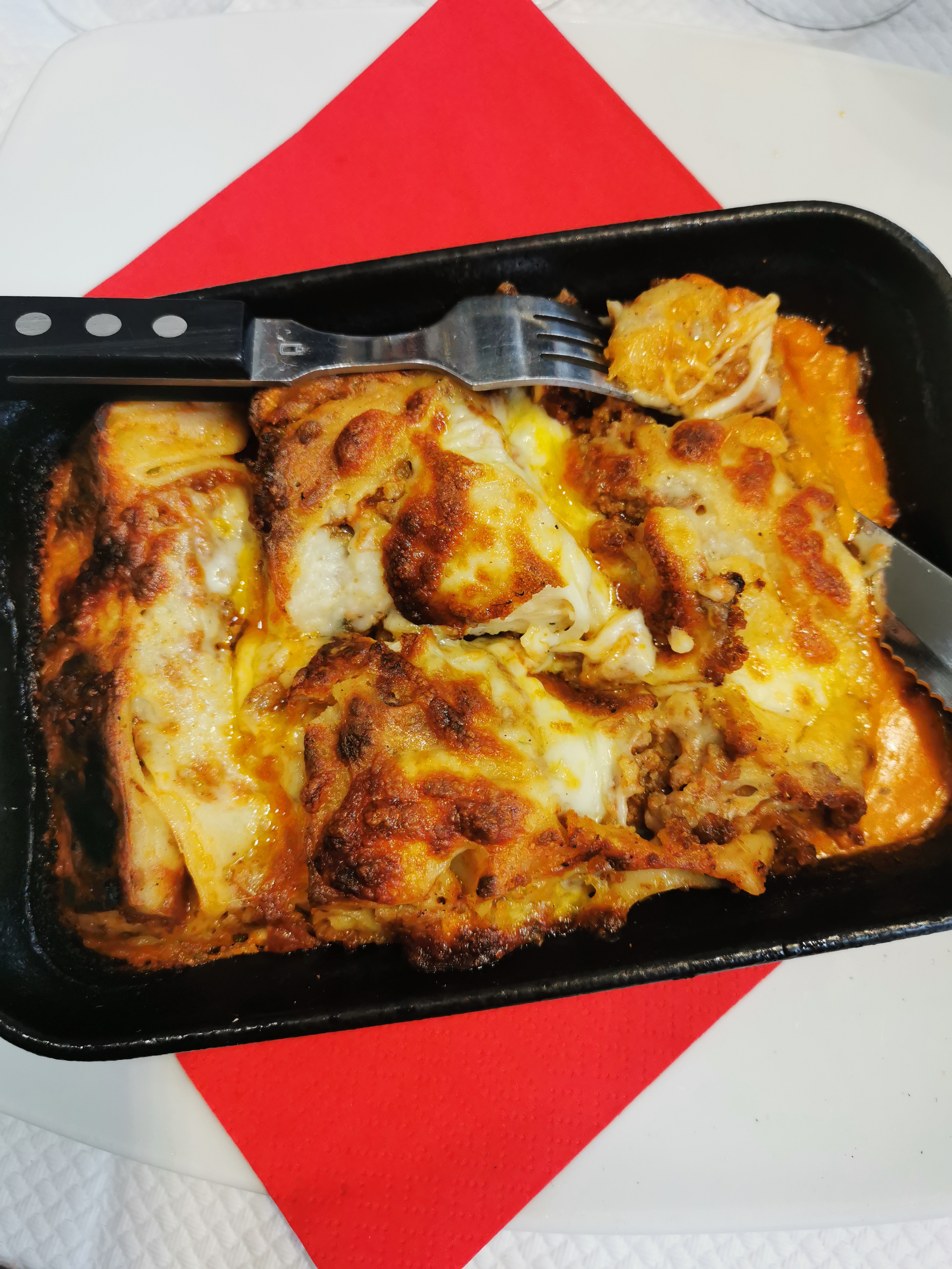 Lasagnes et pommes de terre frites persillées et à l'ail étaient juste délicieuses. Surtout les lasagnes. Le tout à un prix abordable dans des proportions généreuses. Testé à emporter mais pas sur place