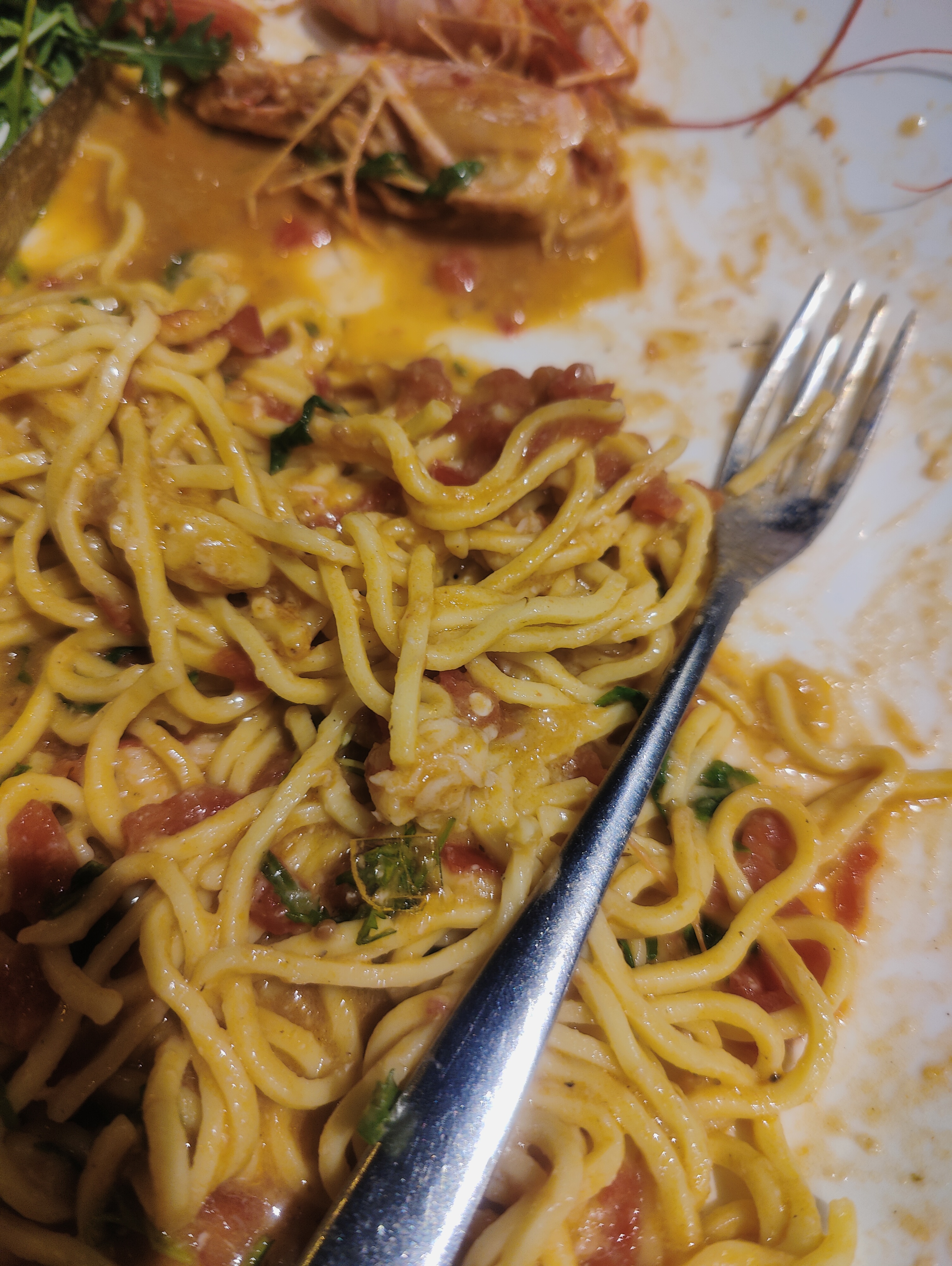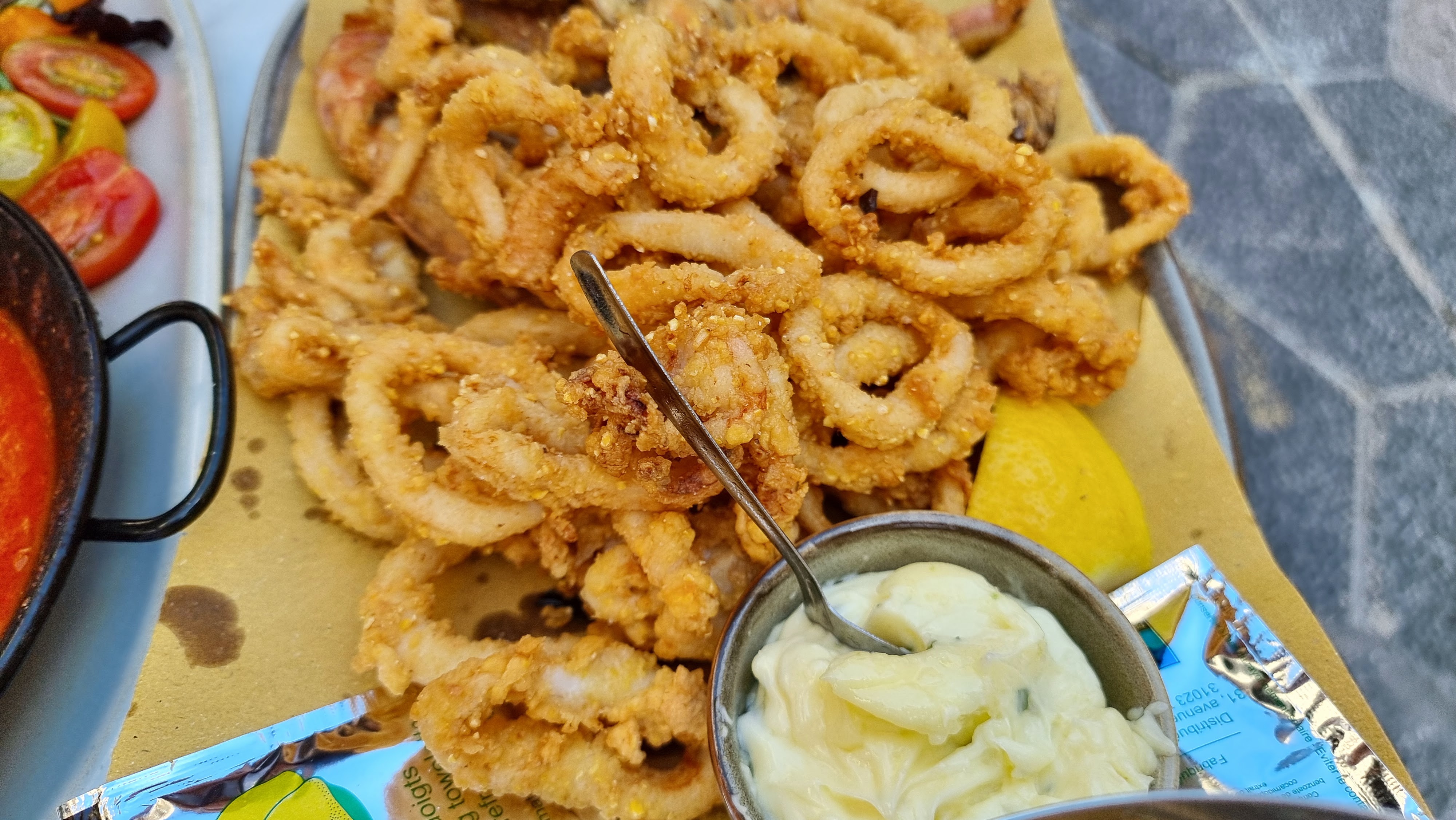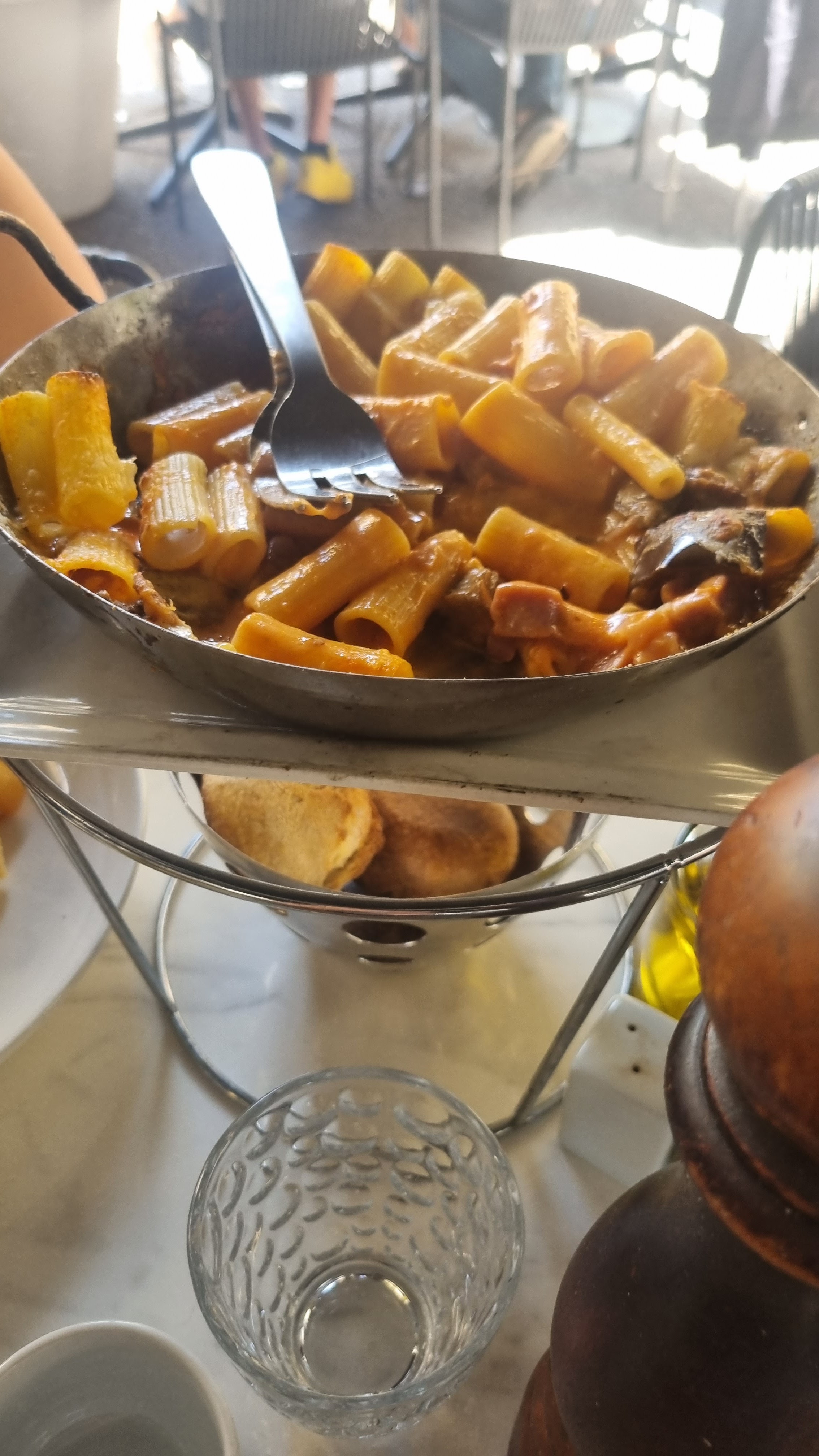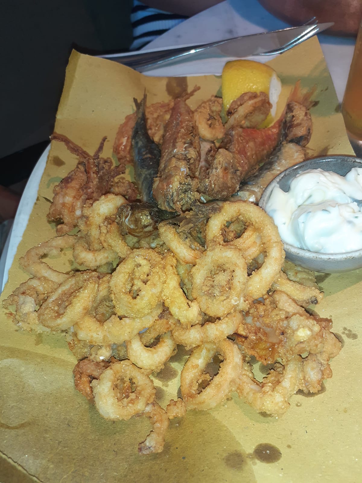 Enfin un vrai frito misto comme en Italie, délicieux et copieux, des rigatonis goûteux, en revanche déçue par le tiramisu, recouvert de spéculos et sans aucune comparaison avec mes confrères italiens… le sourire et la bienveillance de notre serveuse nous a fait oublier cette légère déception.