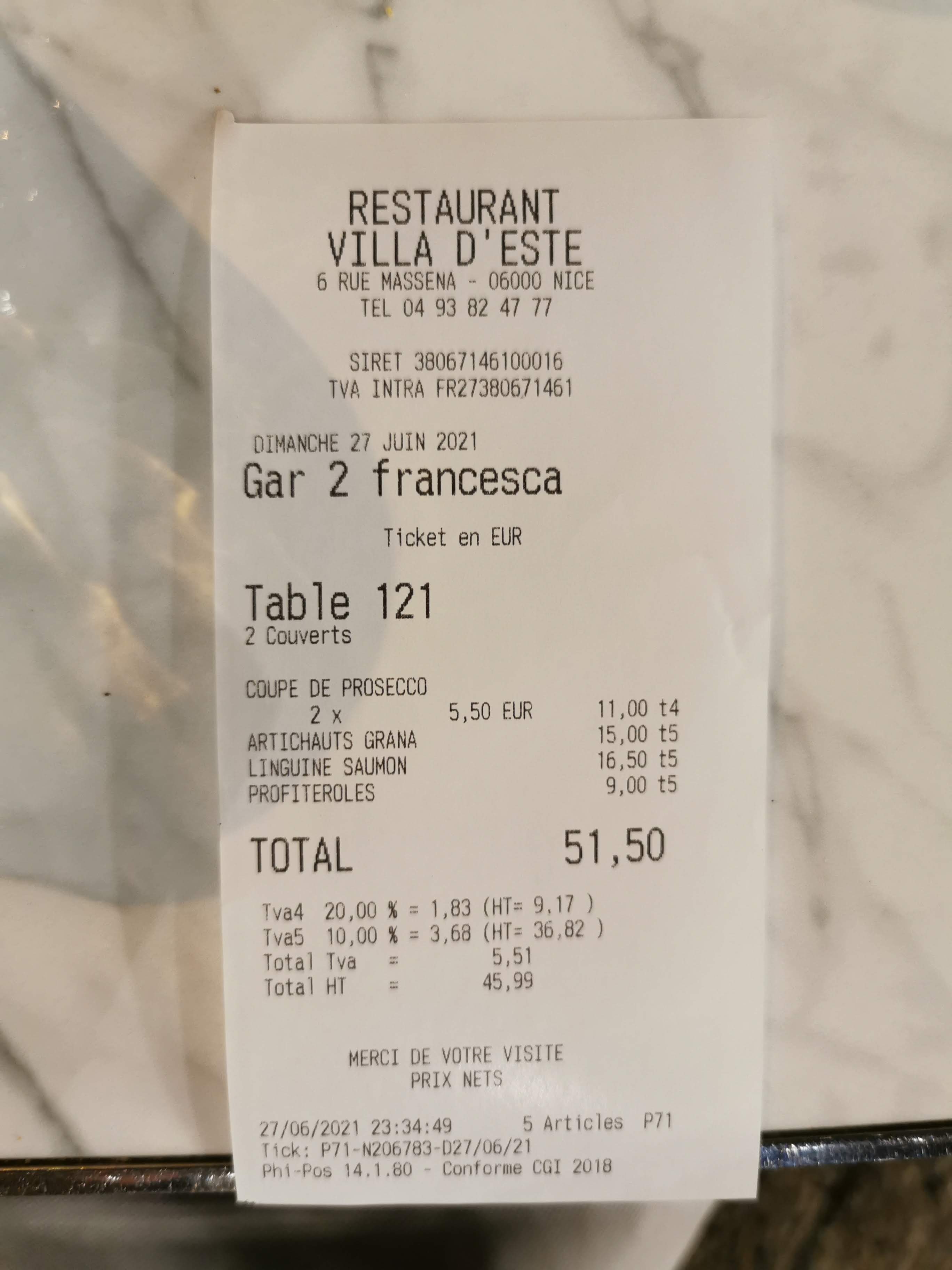 Nous nous sommes rendus à trois reprises à la Villa d’Este et ça a été trois fois un sans faute ! Plats très généreux, bons et à des prix compétitifs : des qualités qui sont rares à Nice et sur la piétonne ! Une bonne ambiance, des serveurs efficaces et forts sympathiques. Une bonne adresse 🧡