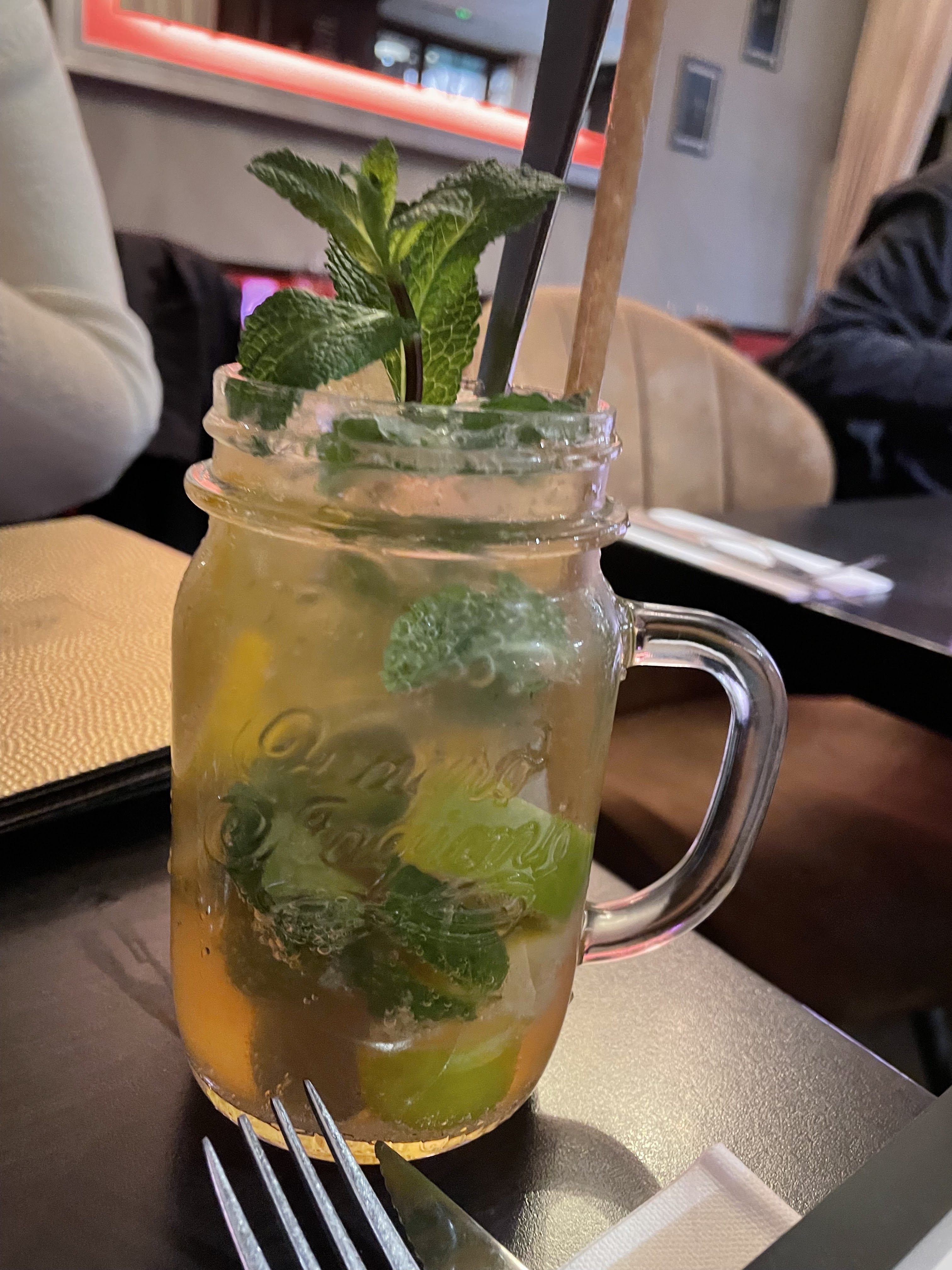 Plusieurs points : Super belle décoration / La serveuse est adorable / Nourriture correcte (la soupe aux oignons bof mais on se régale quand même avec le fish and chips! ) / Le virgin mojito est très bon. / Globalement = Prix correct.