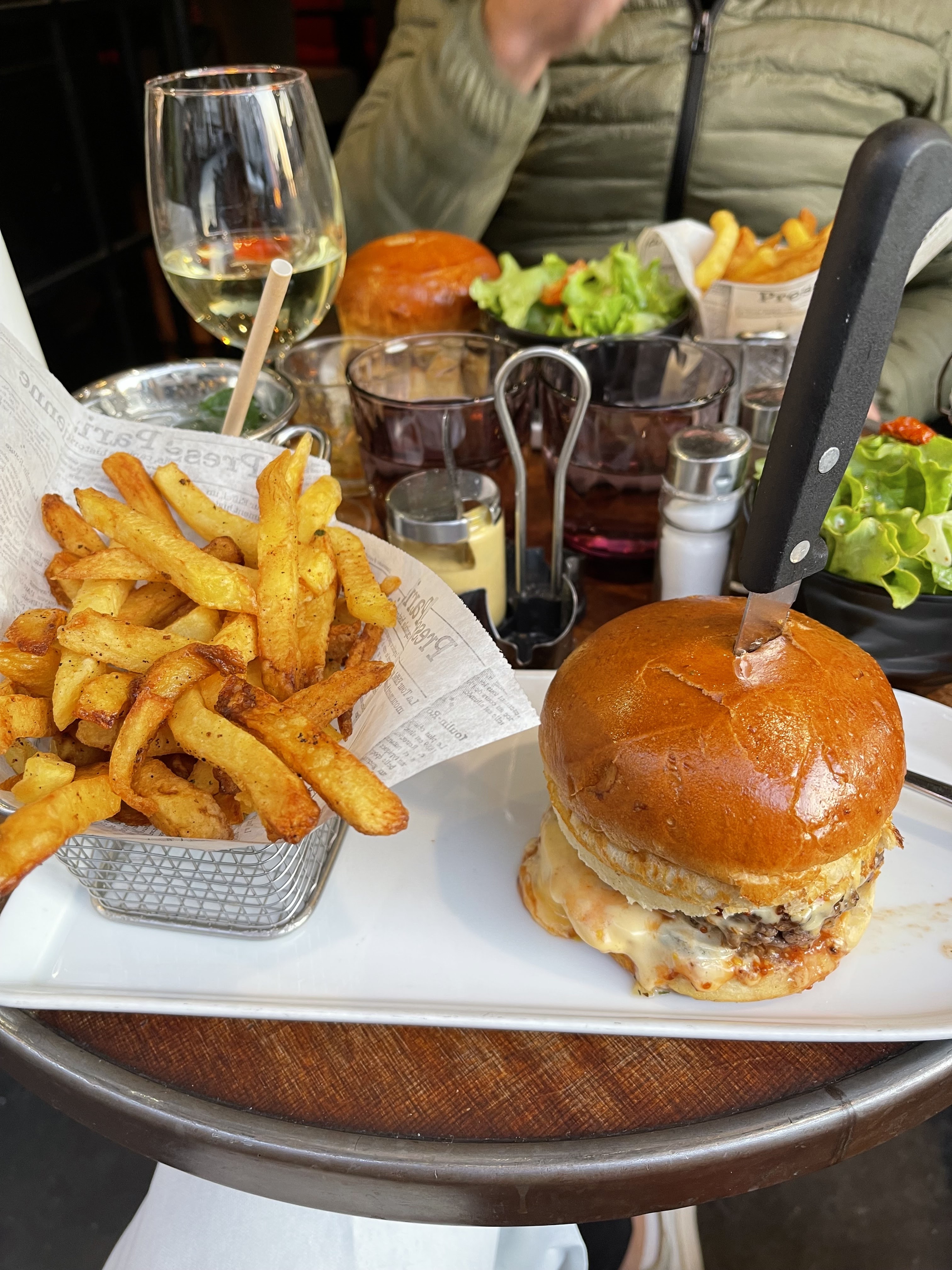 J'adore..service toop !! Nourriture sympa surtout le tartare de bœuf au couteau ! Mayo maison 💚 le service très disponible et des plus sympathiques .. Le personnel a changé et vous oublie sur un coin de table .. une fois je peux comprendre vis à vis de l'affluence or ce soir non ... on oublie pas un client en demande de commande depuis 15 min en allant faire des bisous à uen copine en face ... :( bye