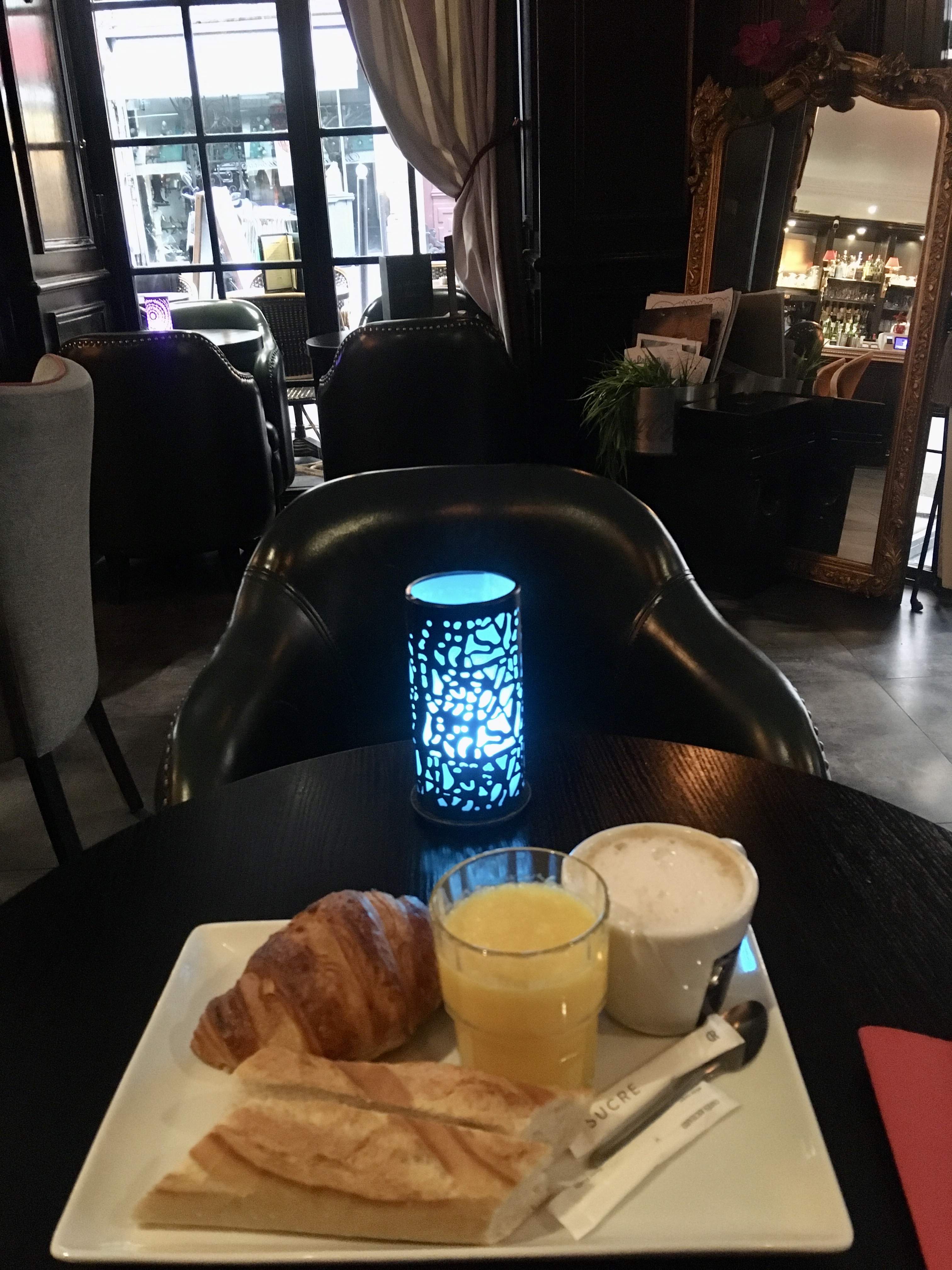 Petit déjeuner très agréable en terrasse. Serveuse très avenante et pro. Tarif 7,90€ boisson chaude, croissant, tartines avec beurre et confiture et un verre de jus d'orange pressées.