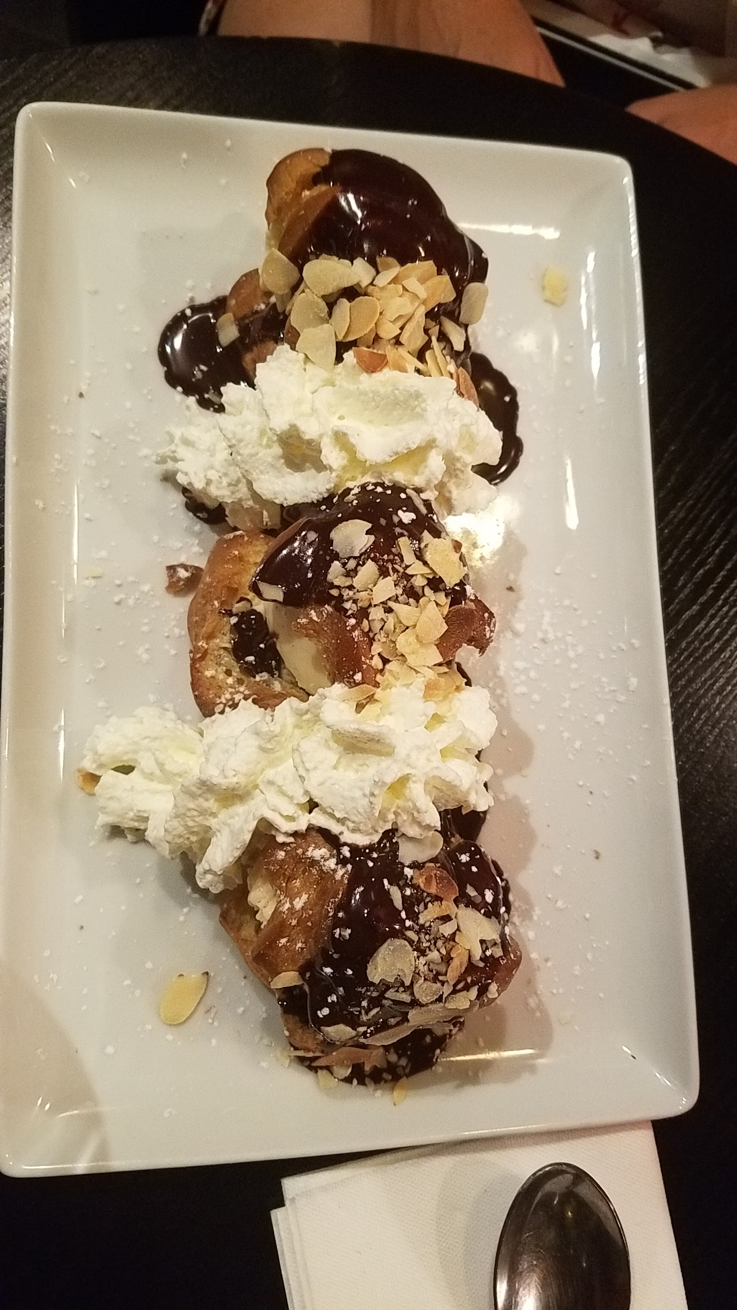 Repas bon Seulement l équipe laisse tout grand ouvert même après leur avoir dit et même fermé la porte nous même aucun respect pour les clients en intérieur dommage Profiteroles chocolat non maison dommage