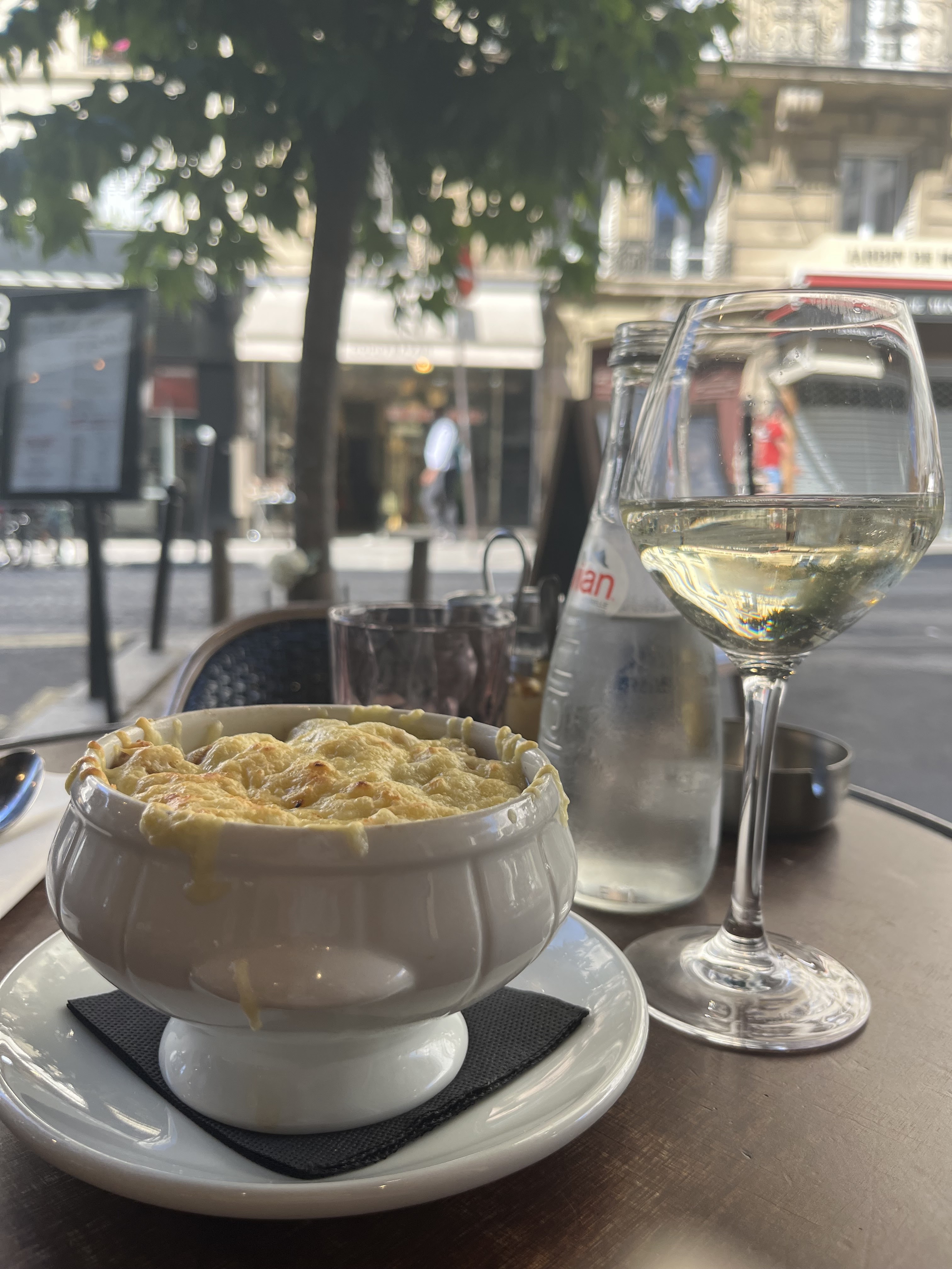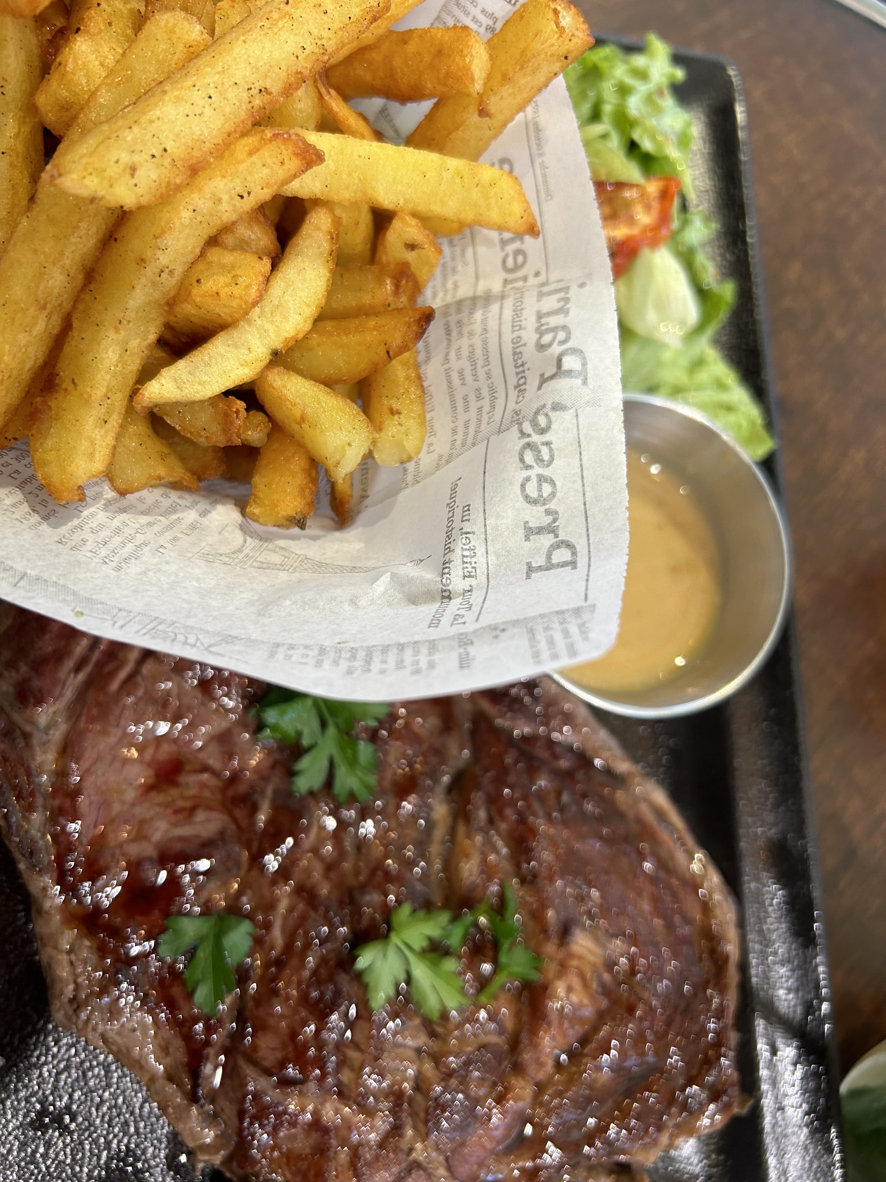Soupe à l'oignon et steak-frites fantastiques. Excellent service et prix très raisonnables pour le déjeuner quand nous y sommes allés.