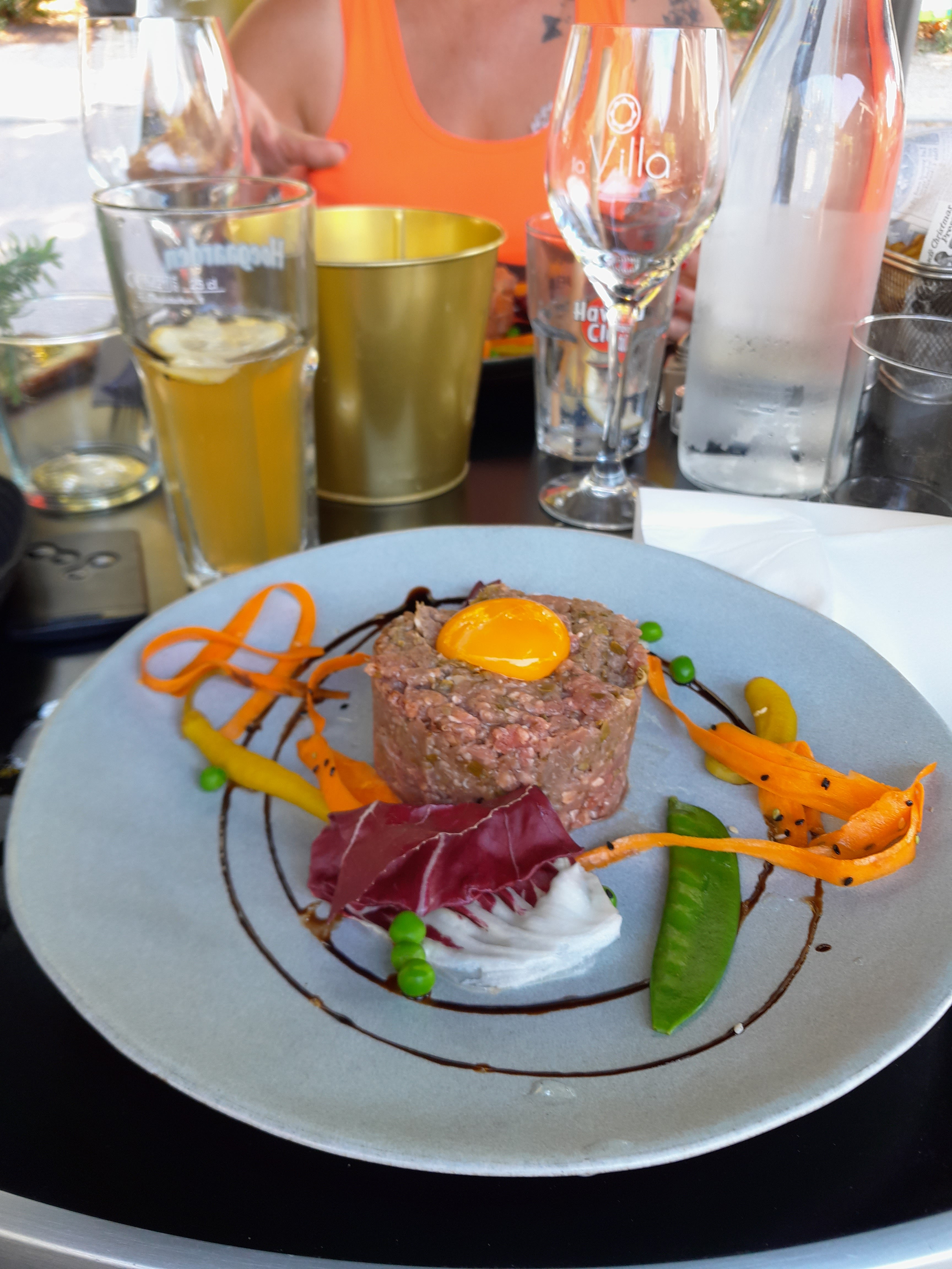 Nous avons pris 2 tartares ( 1 viande et 1 saumon) midi de canicule, très bon. Places ombragé à l extérieur. Bon restaurant.