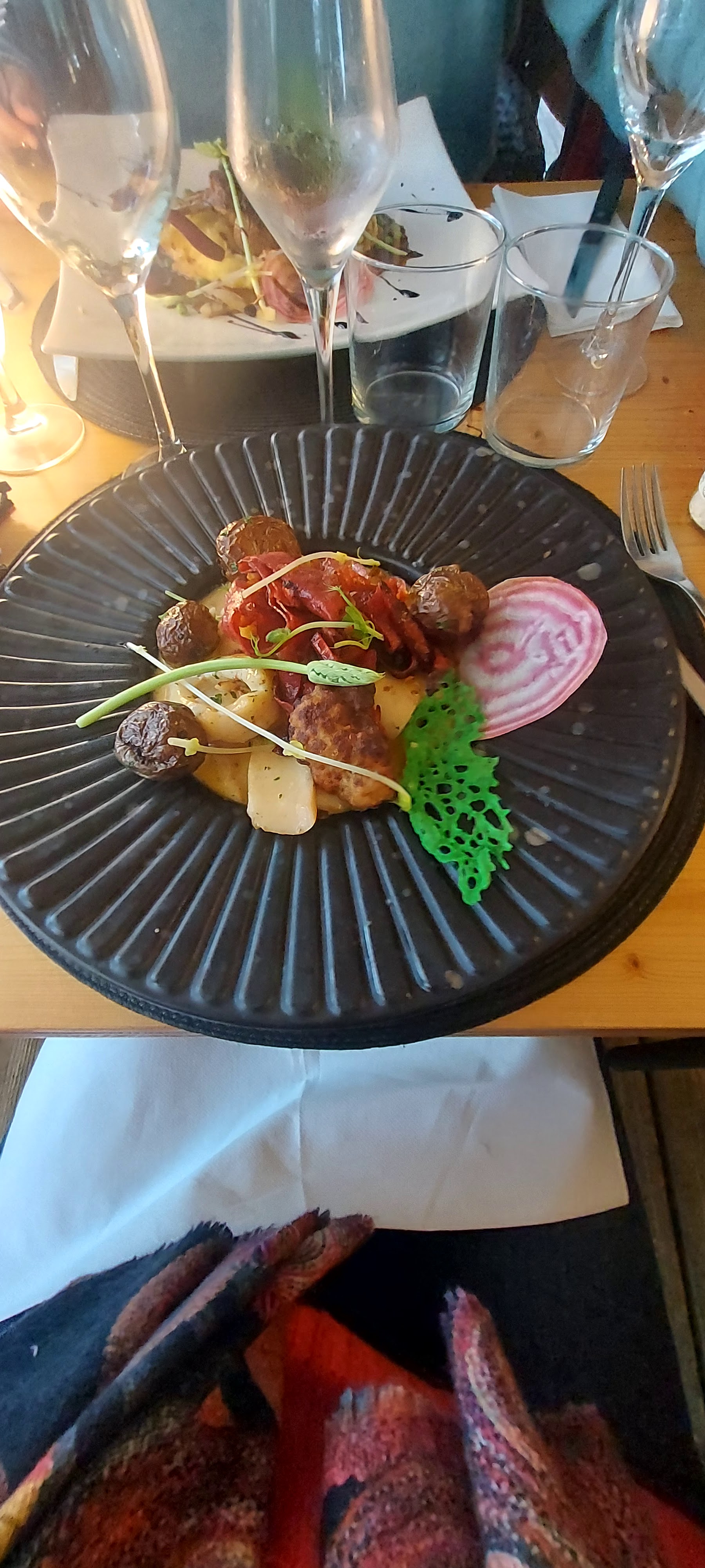 Superbe restaurant! Une soirée magique. La cuisine excellente qui mérite l'étoile, les serveurs professionnels et au petit soin. Rien à dire. Un moment exceptionnel ! Je recommande vivement. Apéritif, menu complet entrée plat dessert, digestif et vin.
