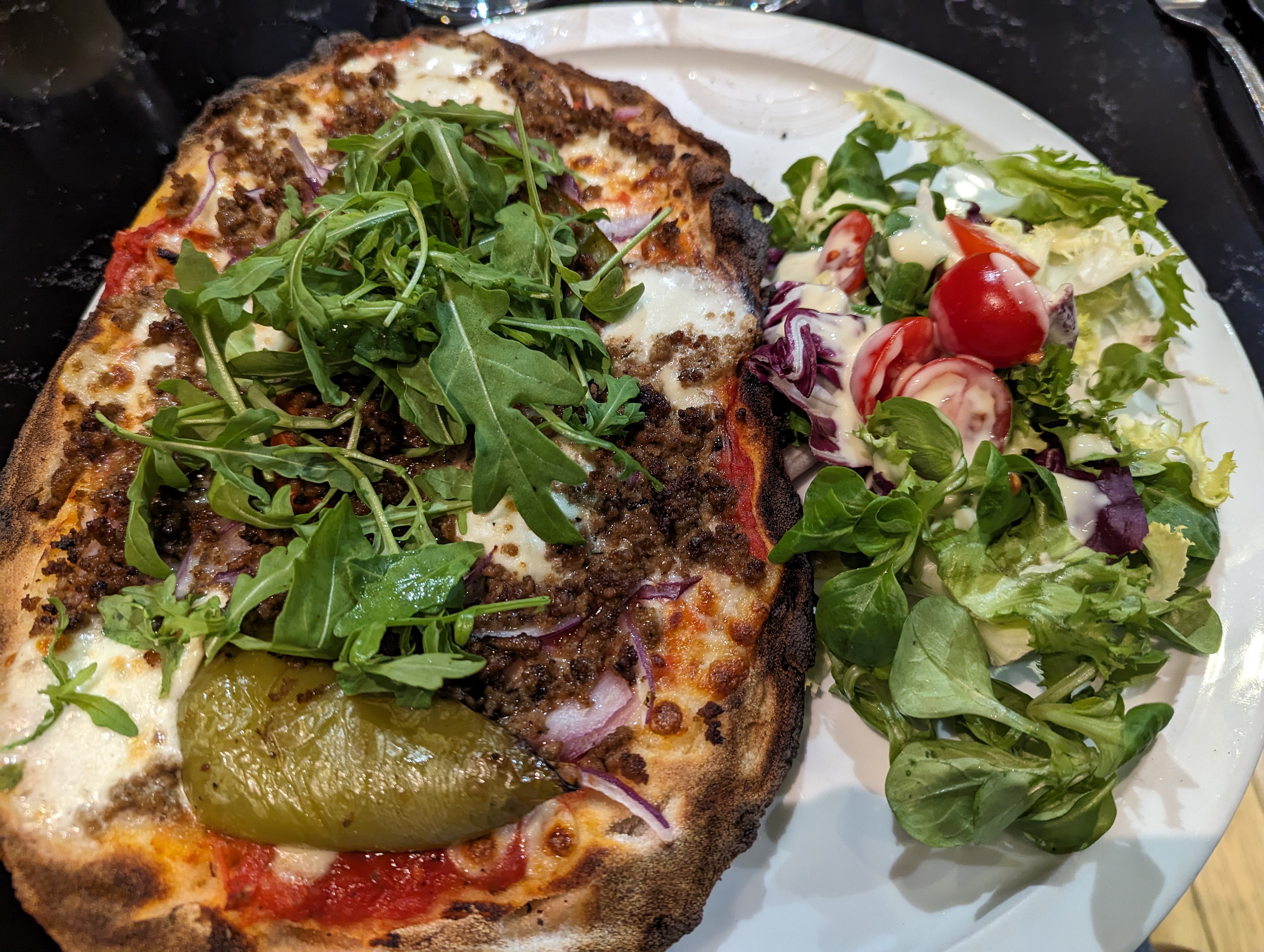 Meilleurs pizza du coin, serveur un peu trop amical (familier) mais le cadre est chic et soigné. (note au resto, rincez et essorez vos salade ;-)